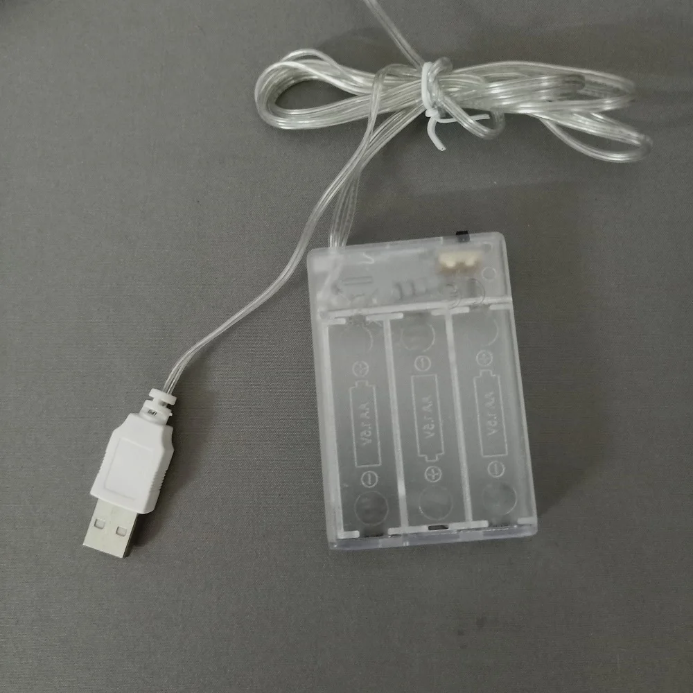 The USB cable does not include an on/off function — switch control works with battery mode only.