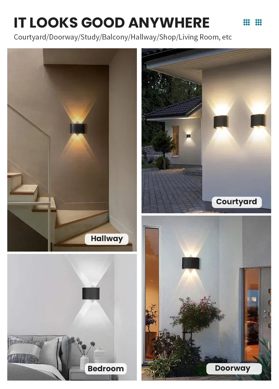 Upgrade your indoor and outdoor lighting with this modern LED wall lamp featuring a built-in motion sensor for smart energy savings. Designed with a sleek up-and-down light effect, it enhances staircases, hallways, bedrooms, foyers, balconies, and outdoor walls. The durable ABS body and IP66 waterproof rating make it suitable for all weather conditions. When motion is detected within 3–6 meters, the light automatically turns on and switches off after 30 seconds, reducing power consumption. With a modern design, long-lasting LED light source, and easy self-contained installation, this wall lamp is perfect for daily home lighting.