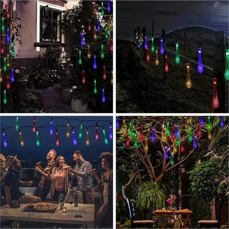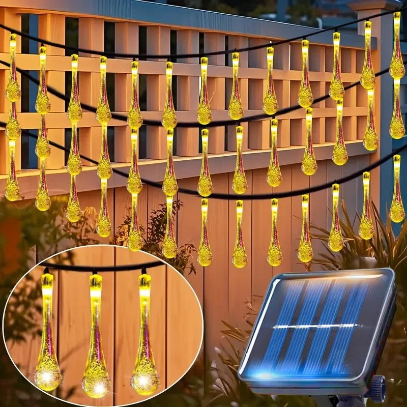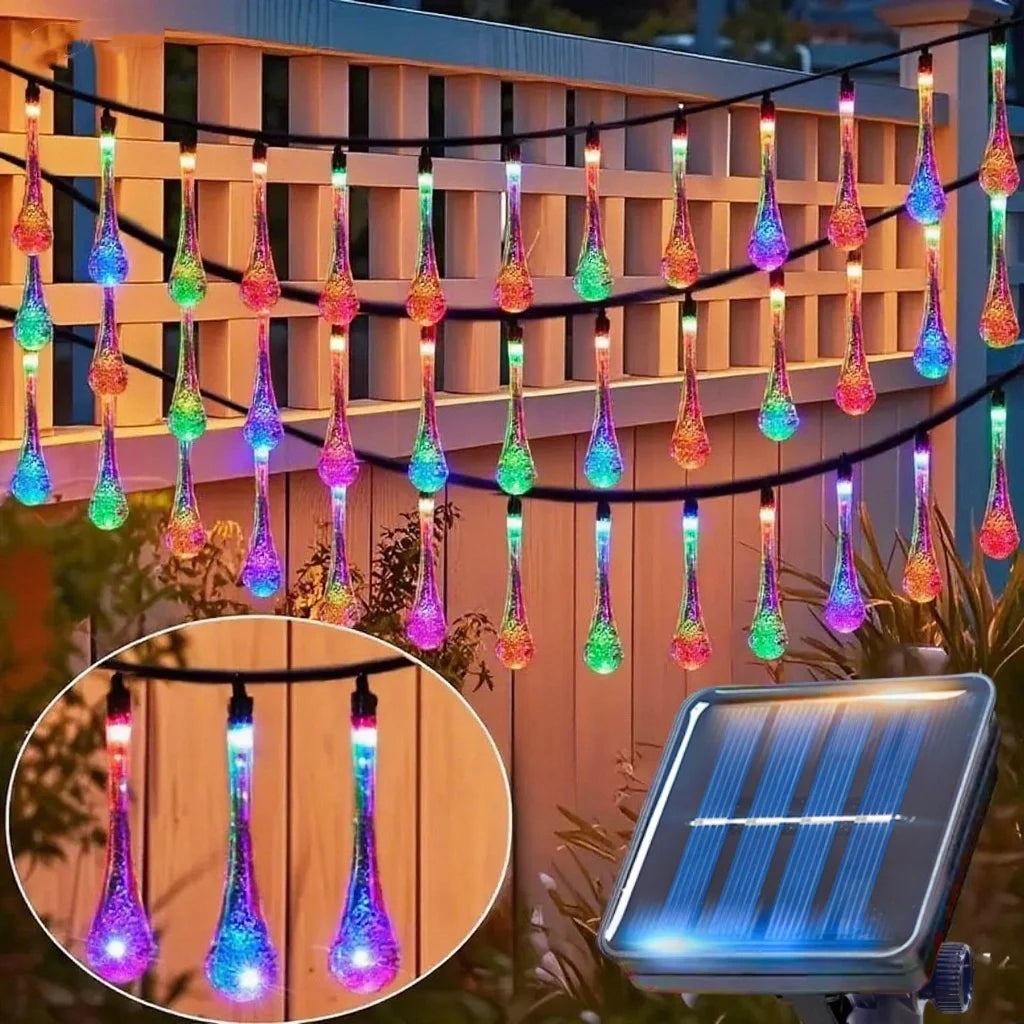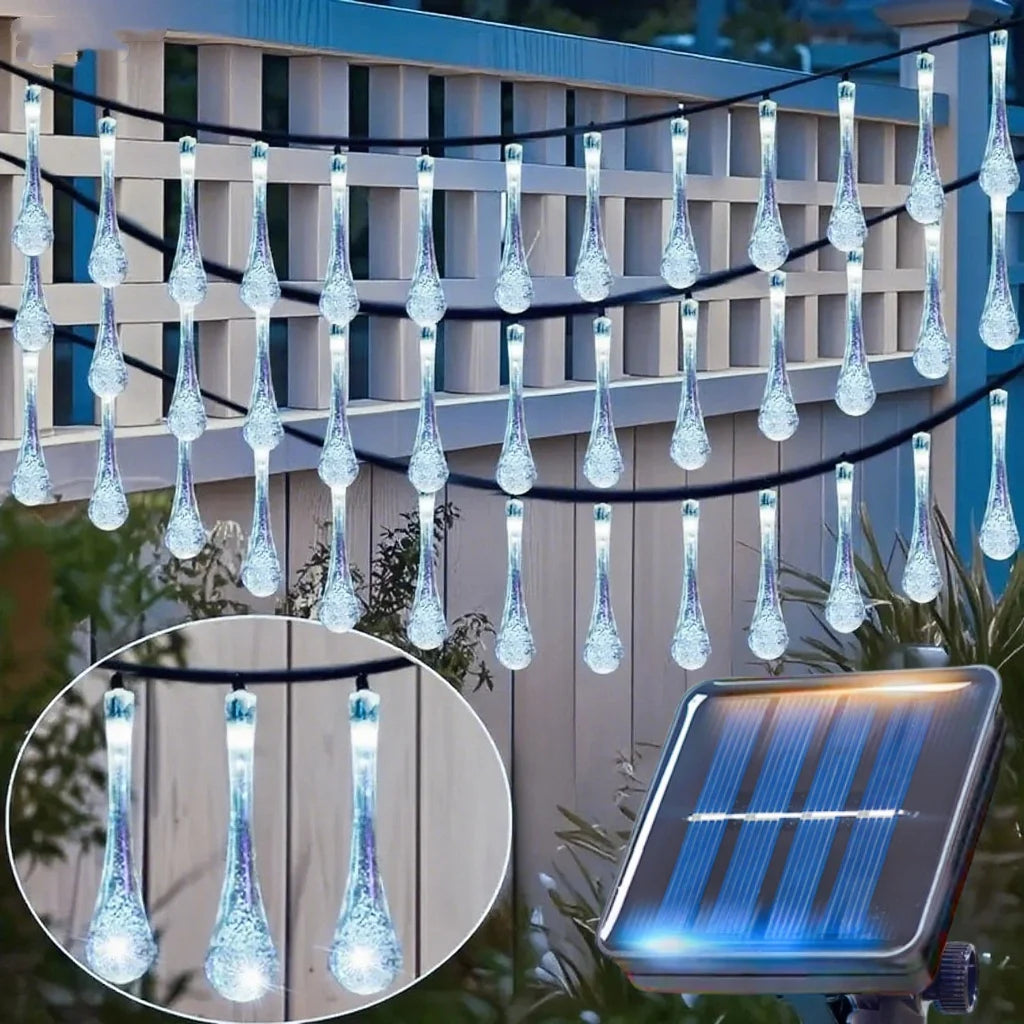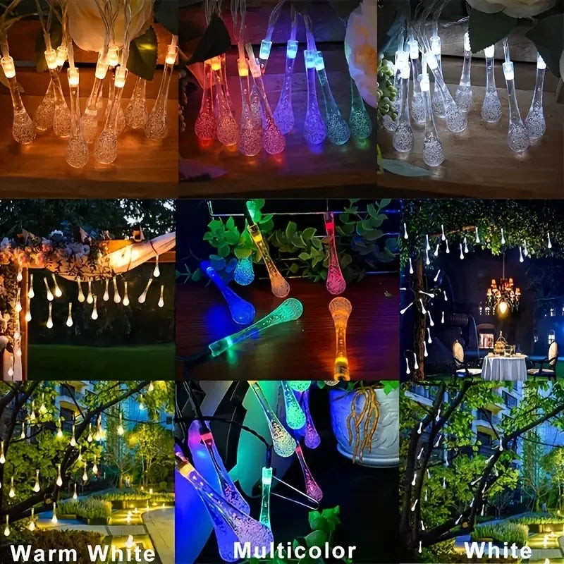 Outdoor Solar LED Water Droplet String Light | 20/30/50 LEDs Garden Tree Decoration with 8 Modes