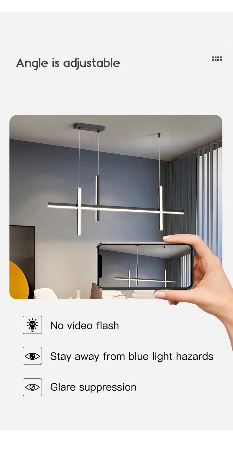 Elevate your interior decor with the Modern Minimalism LED Pendant Lamp, a stylish and versatile lighting fixture designed for various living spaces including dining rooms, kitchens, bars, living rooms, and bedrooms. This art-inspired chandelier combines modern aesthetics with functionality, making it a perfect choice for contemporary home settings.