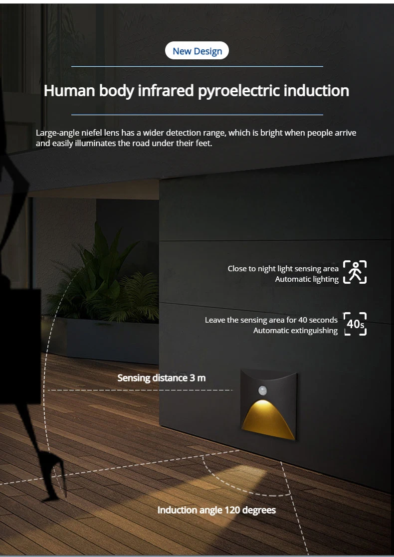 Enhance safety and style with this 3W LED stair light featuring an intelligent motion sensor for automatic illumination. Designed for recessed wall installation, this modern step light provides soft downward lighting ideal for staircases, corridors, aisles, and hallways. The built-in PIR sensor detects movement within 1–3 meters and automatically turns the light on, switching off after 40 seconds to save energy. Crafted from high-quality aluminum with an IP65 waterproof rating, it is suitable for both indoor and outdoor use. Compatible with AC 85–265V power supply, this durable and energy-efficient wall light ensures reliable daily lighting with a clean, modern finish.