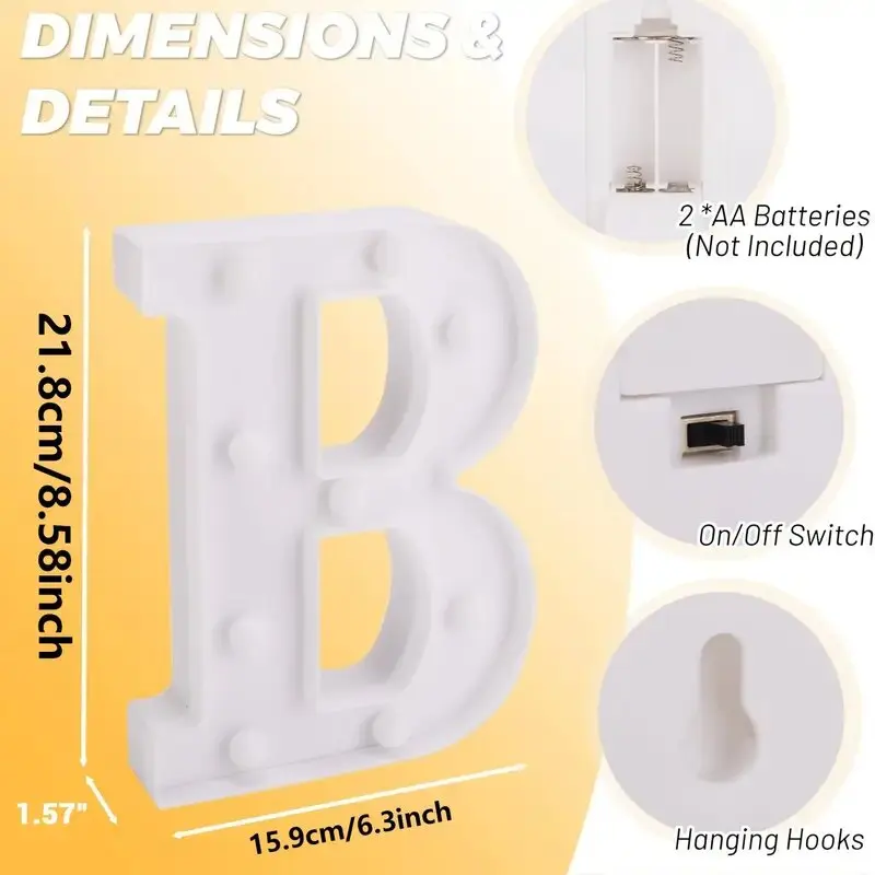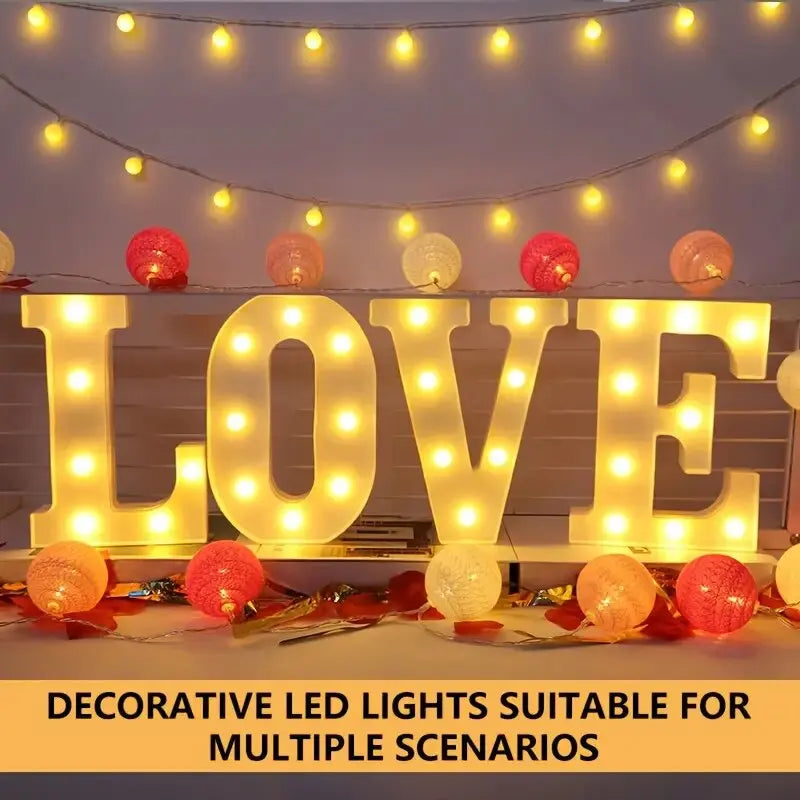 Create unforgettable moments with these stylish LED letter and number night lights designed to add warmth, emotion, and personality to any celebration. Made from durable ABS material, each light emits a soft, cozy glow that instantly enhances the atmosphere without being harsh on the eyes. With 26 alphabet letters and 10 numbers available, you can easily spell meaningful words like LOVE, HOME, HAPPY, MR & MRS, MARRY ME, 2025, and more. These battery-powered lights are lightweight, portable, and wire-free, making them perfect for walls, tables, or shelves. Ideal for weddings, birthdays, parties, proposals, Christmas, and festive décor, these lights are affordable yet impactful.