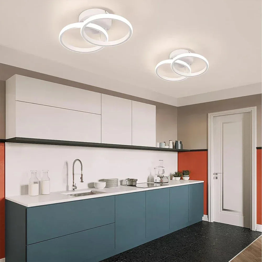 Upgrade your indoor space with this Modern 2 Rings LED Ceiling Light, designed with a creative circular structure that enhances hallways, balconies, aisles, offices, and bedrooms. Its sleek aluminum body and minimalist design deliver contemporary elegance while providing efficient illumination.