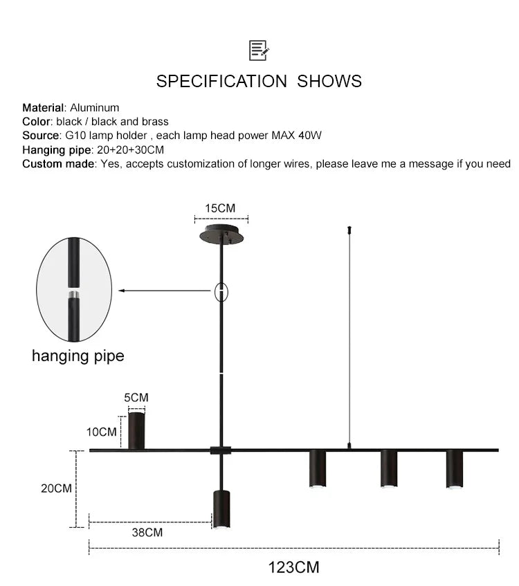 Crafted from high-quality iron with an iron finish, this pendant lamp features a shadeless design that directs light upwards, creating a soft and ambient illumination. It comes equipped with LED bulbs included, ensuring energy efficiency and long-lasting performance. The lamp supports dimmable functionality, allowing you to adjust the brightness according to your preference.