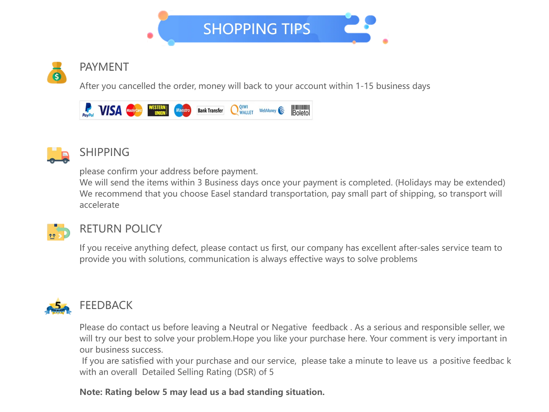 3. 15-Day Return Policy: Not satisfied with your purchase? No worries! You have 15 days from the date of delivery to initiate a hassle-free return.