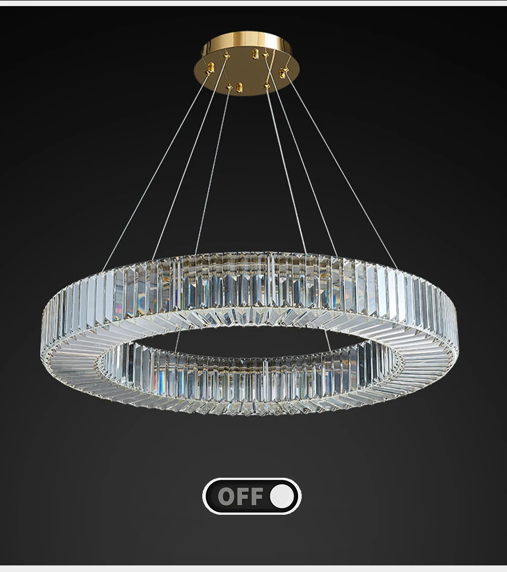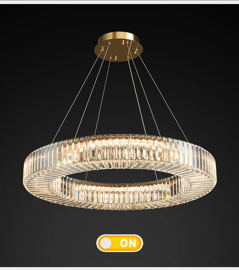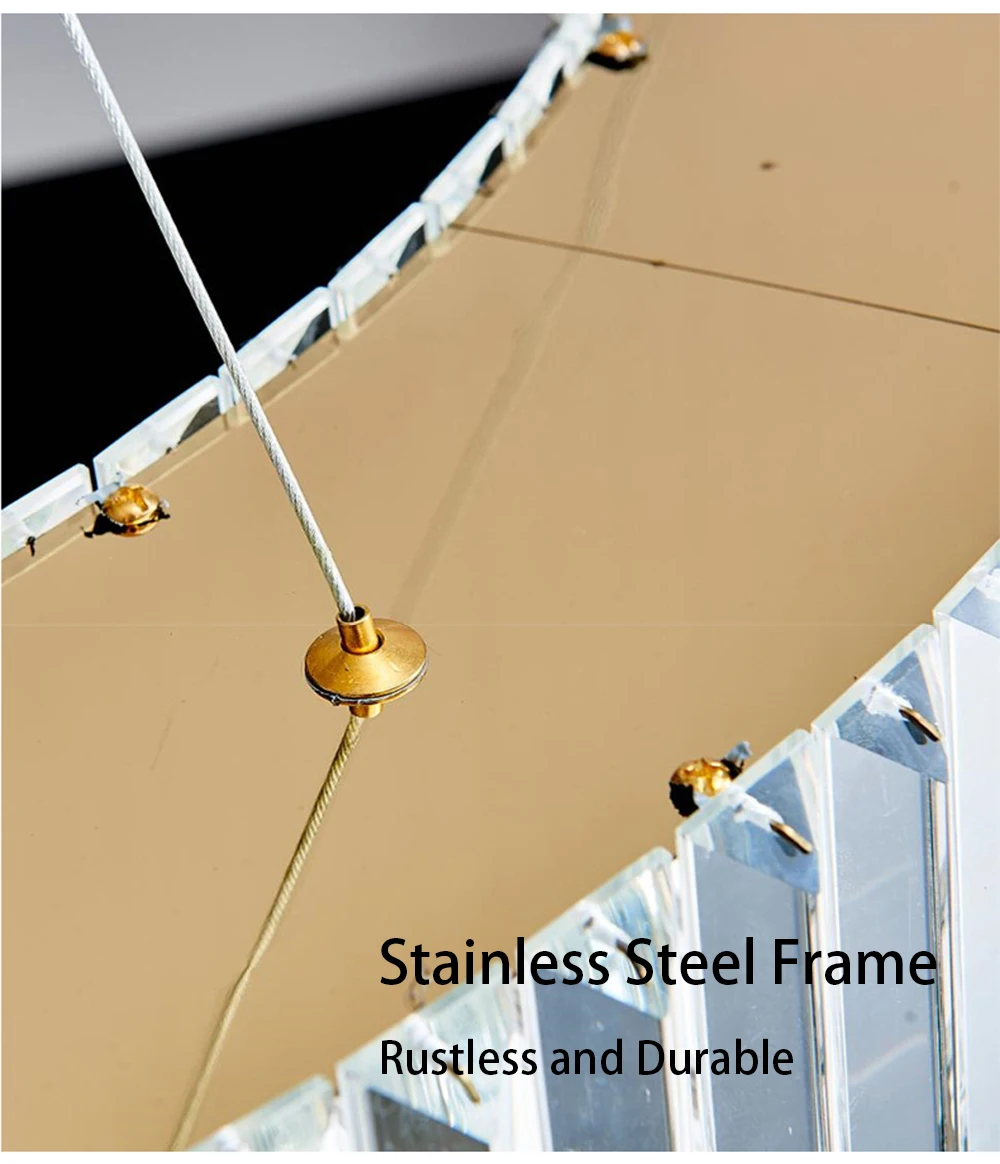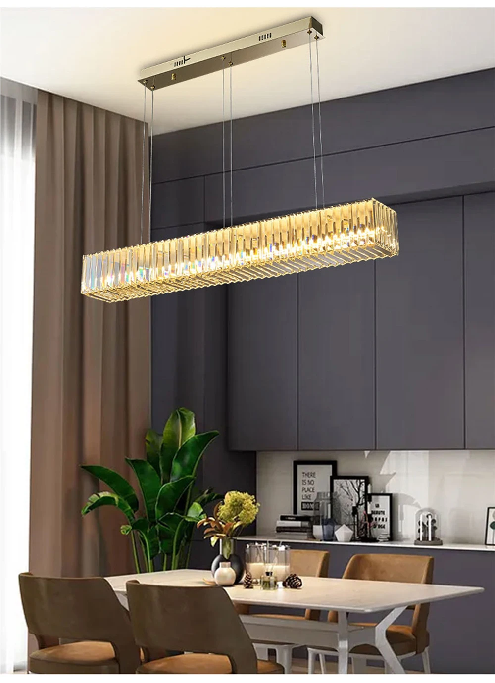Elevate your dining room decor with the Long Chandeliers for Dining Room, a luxurious addition to your home's lighting ensemble. This modern hanging lamp features a sleek design adorned with golden accents and sparkling crystals, exuding elegance and sophistication. Crafted from high-quality stainless steel with a polished steel finish, this chandelier is designed to enhance the ambiance of any dining space.