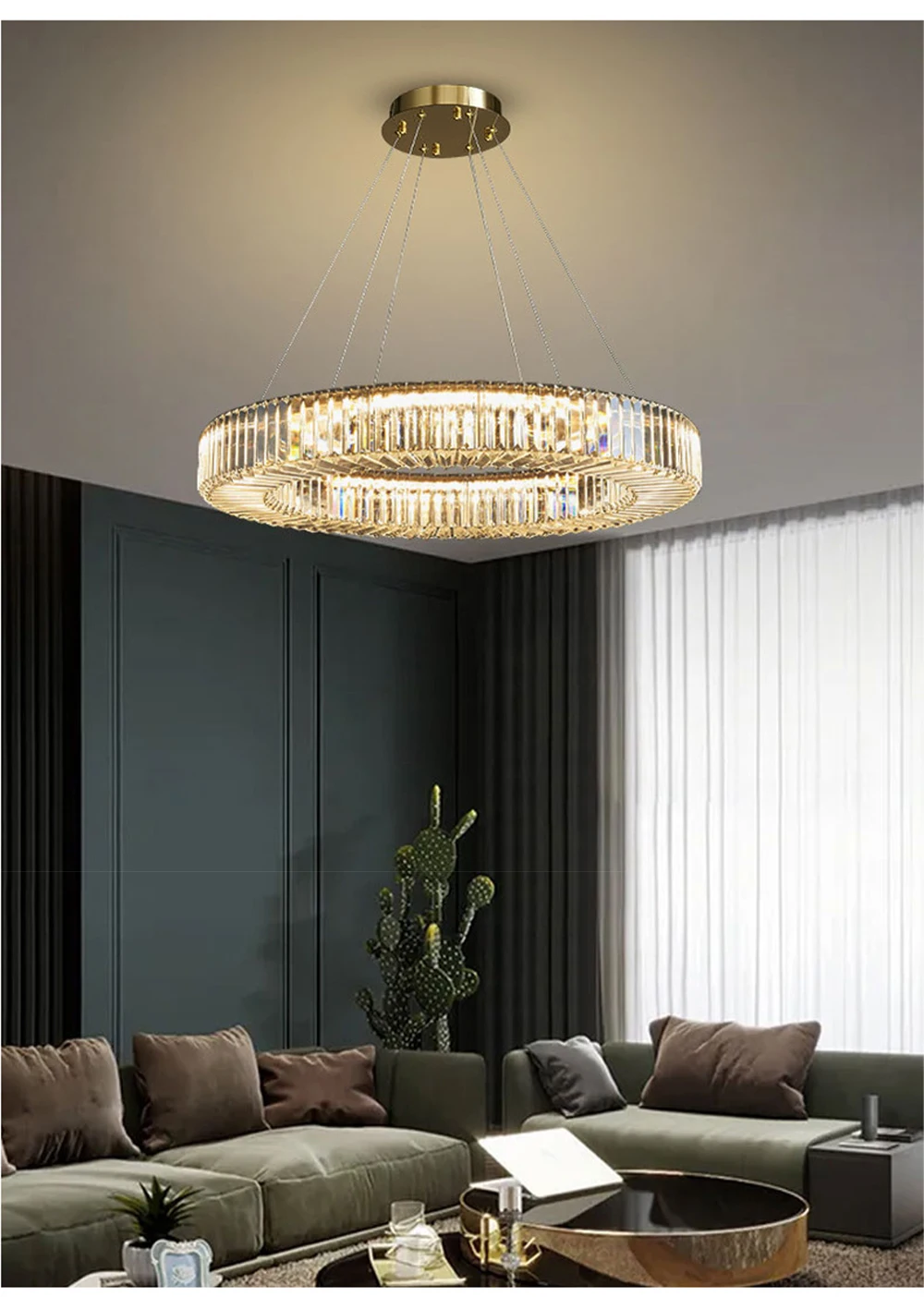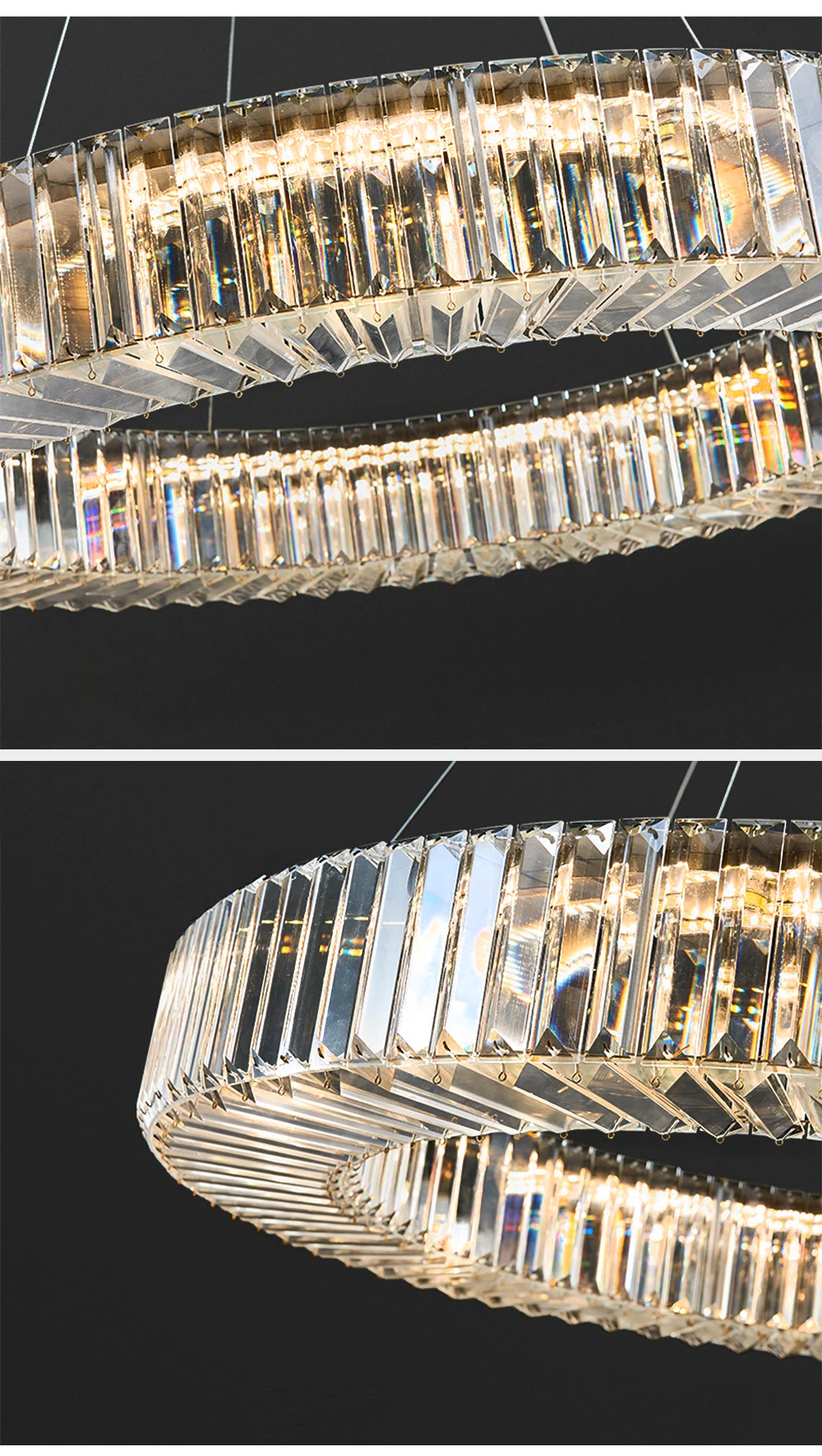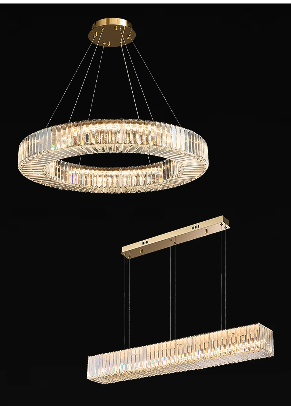 Long Chandeliers for Dining Room - Golden Luxury Crystal Modern Hanging Lamp
