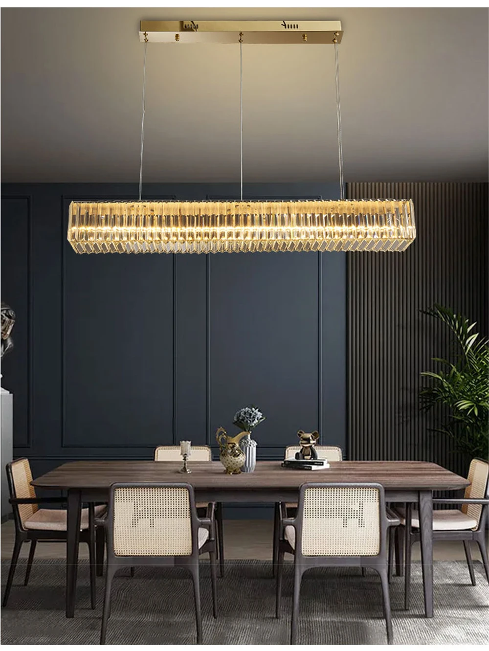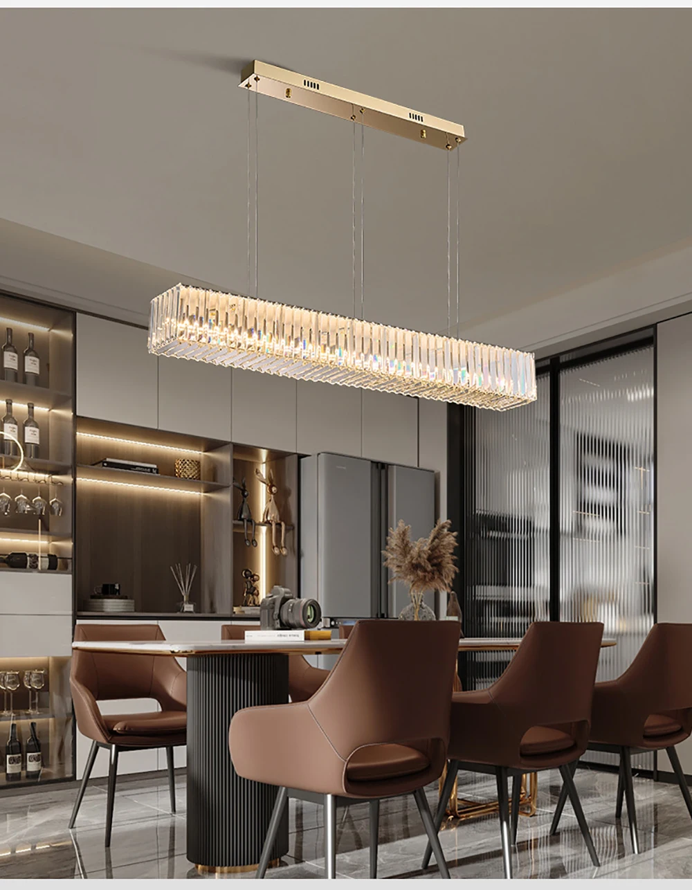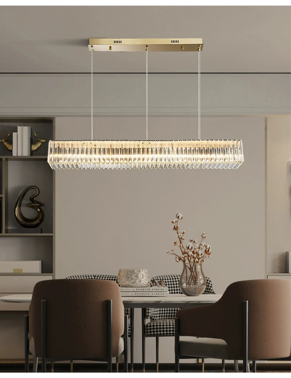 Illuminate your dining experience with the Long Chandeliers for Dining Room, blending luxury and functionality to create a captivating atmosphere. This chandelier not only provides exceptional lighting but also serves as a centerpiece of elegance, enriching the aesthetic appeal of your dining area with its sophisticated design and radiant lighting.