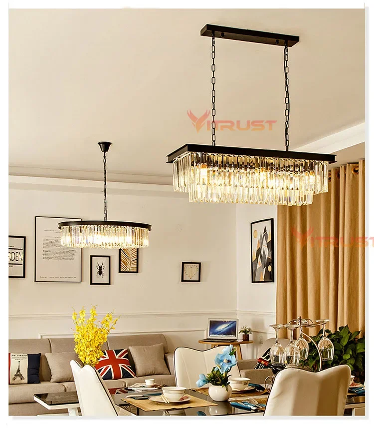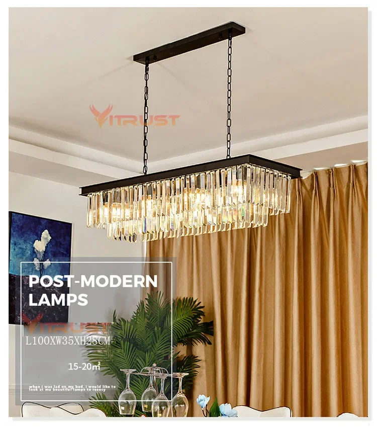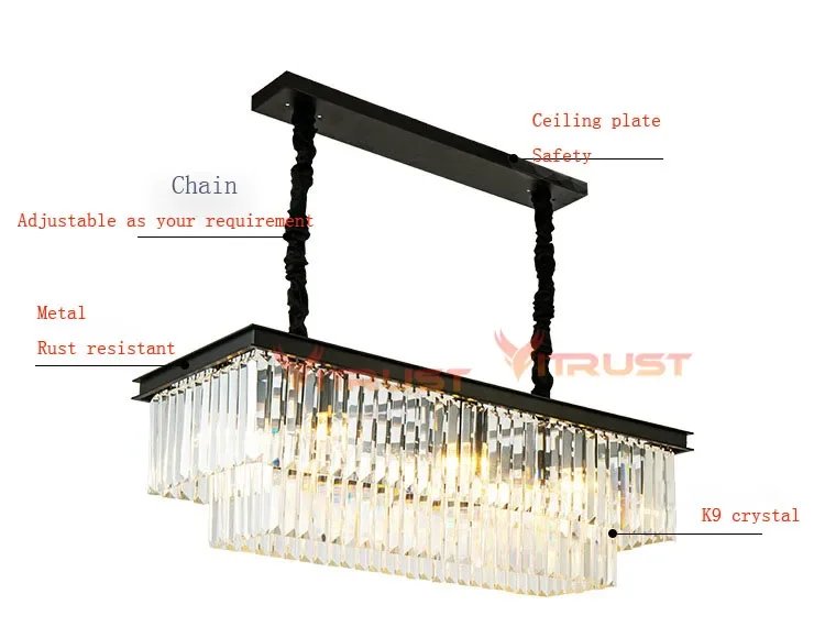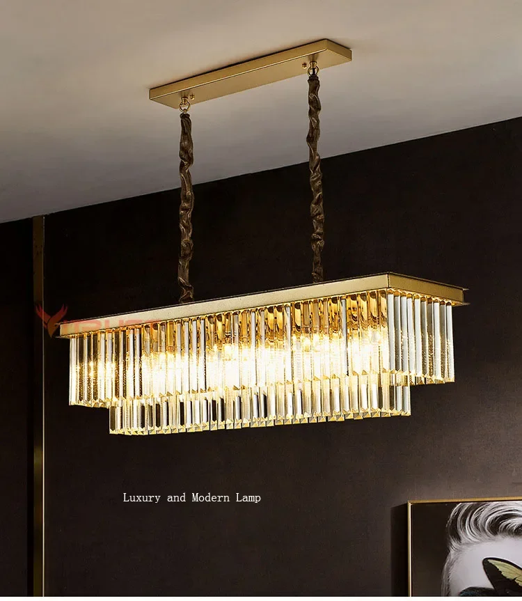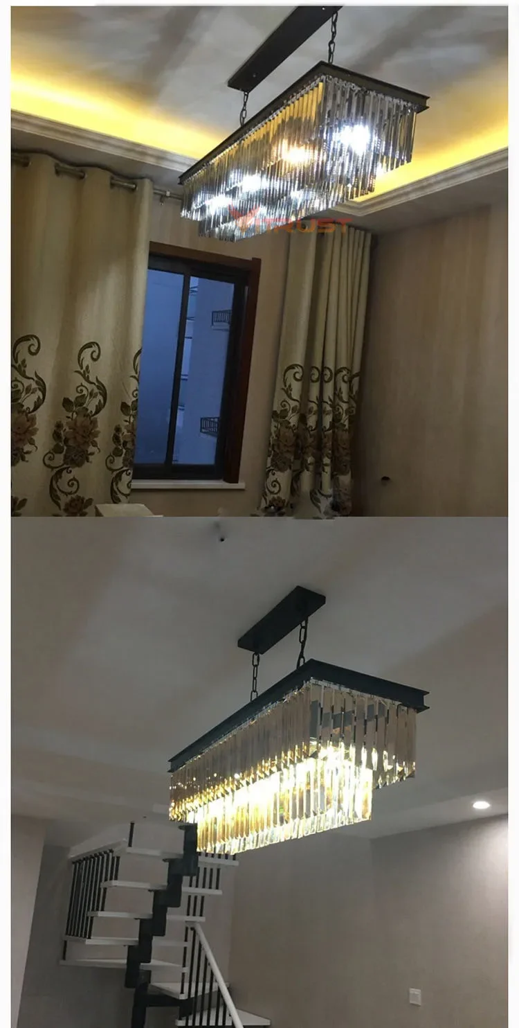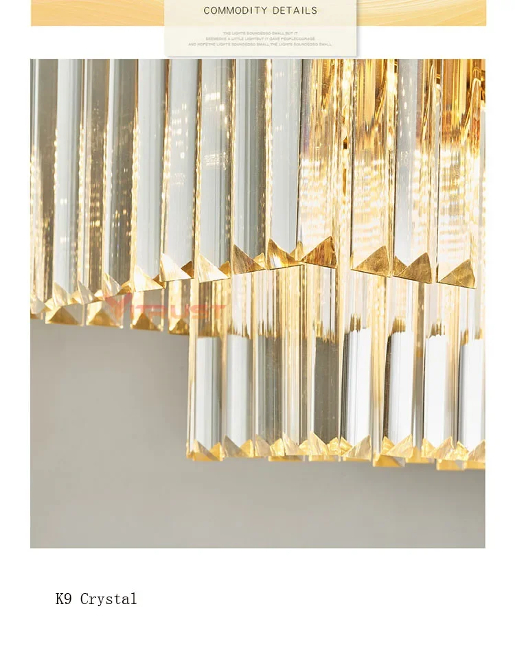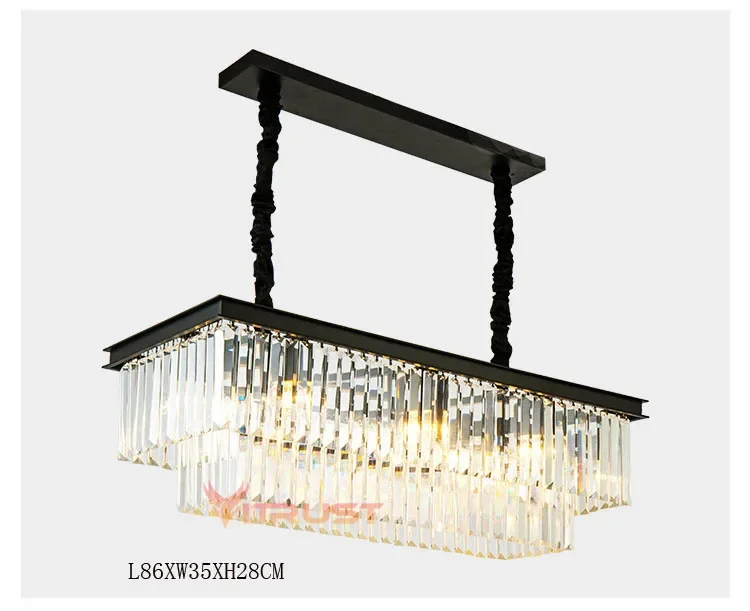 Modern Crystal Chandelier Luxury K9 Crystal Square Gold Black LED Hanging Lamps