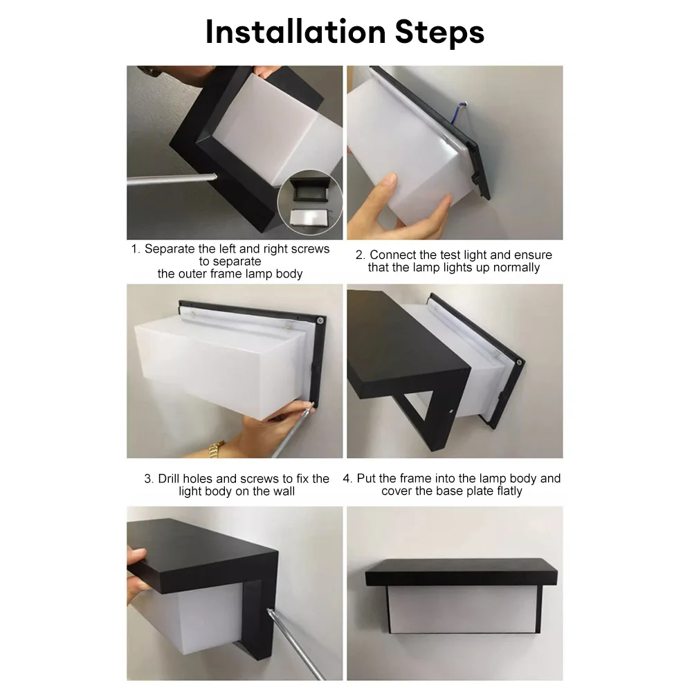 1: Outdoor wall lamp: the external wall lamp is composed of black aluminum shell and PC lampshade, which can prevent ultraviolet damage, good light transmission, soft and beautiful light. The aluminum material gives it anti-rust and anti-corrosion properties. It can be mounted on the wall as a porch light.