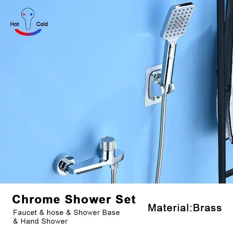 Gray Waterfall Bathtub Faucet with Hand Shower - Brass Chrome Wall Mounted Full Shower system Set