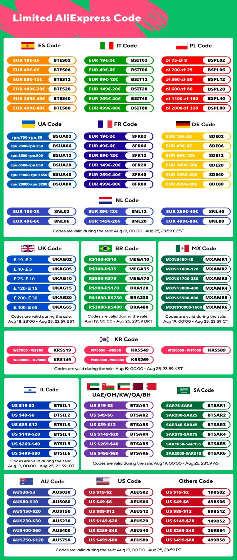 Black, Black/White, Grey, Pink, Green