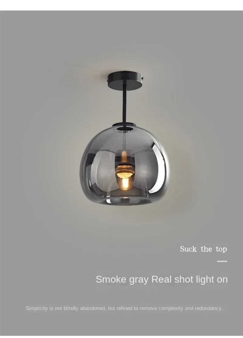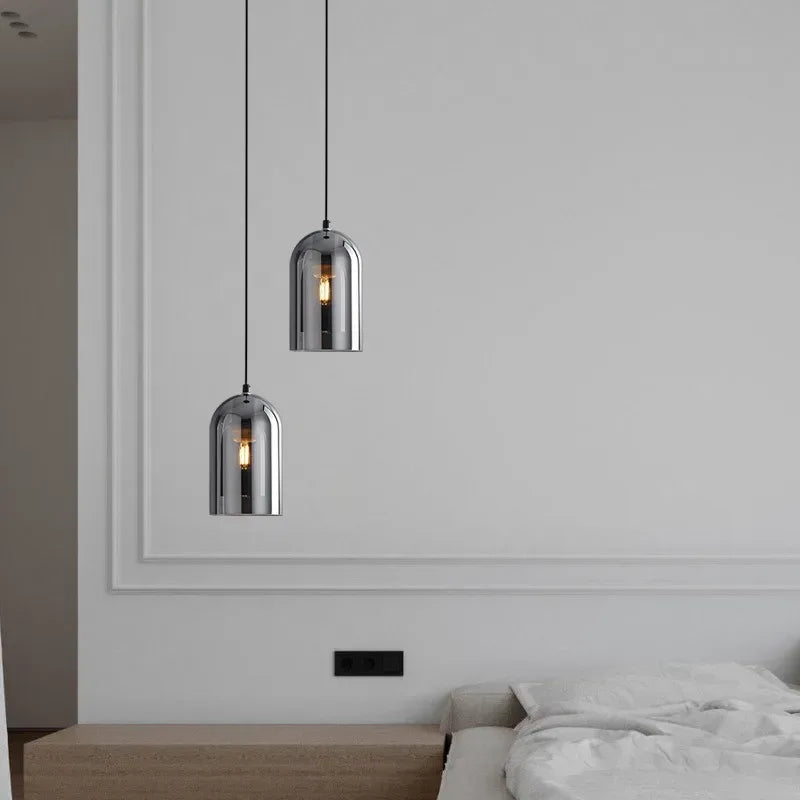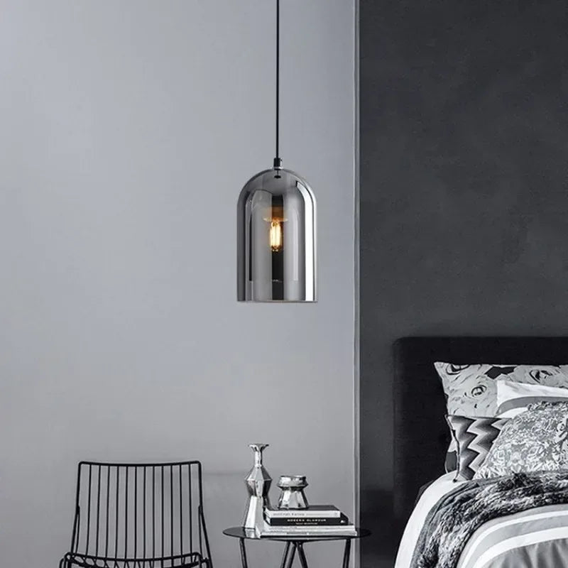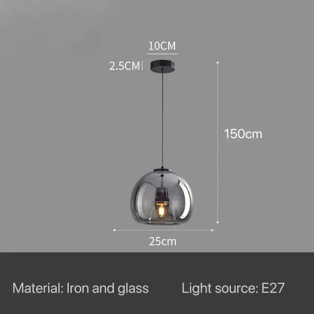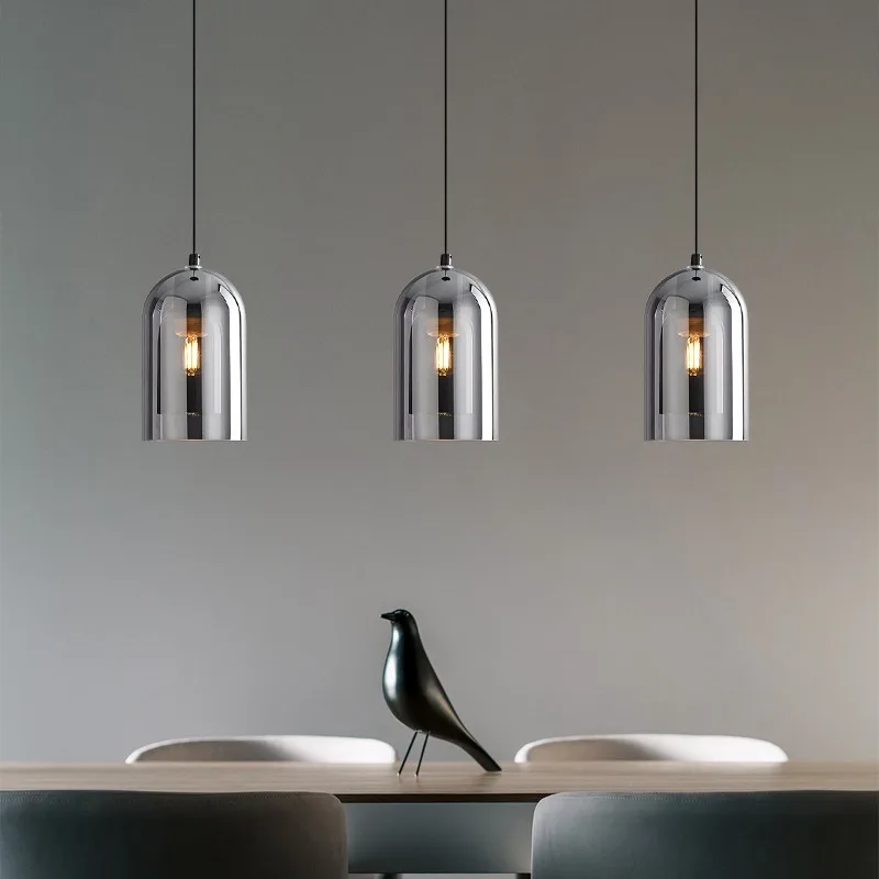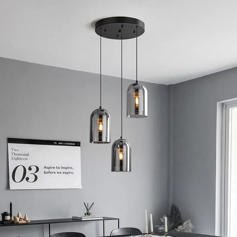 Enhance your interiors with this Nordic Modern Glass Ceiling Lamp, designed for bedrooms, kitchen islands, dining rooms, restaurants, and bar counters. Featuring a sleek dark grey glass shade with plated detailing, this suspended chandelier delivers refined modern elegance while providing efficient daily lighting.