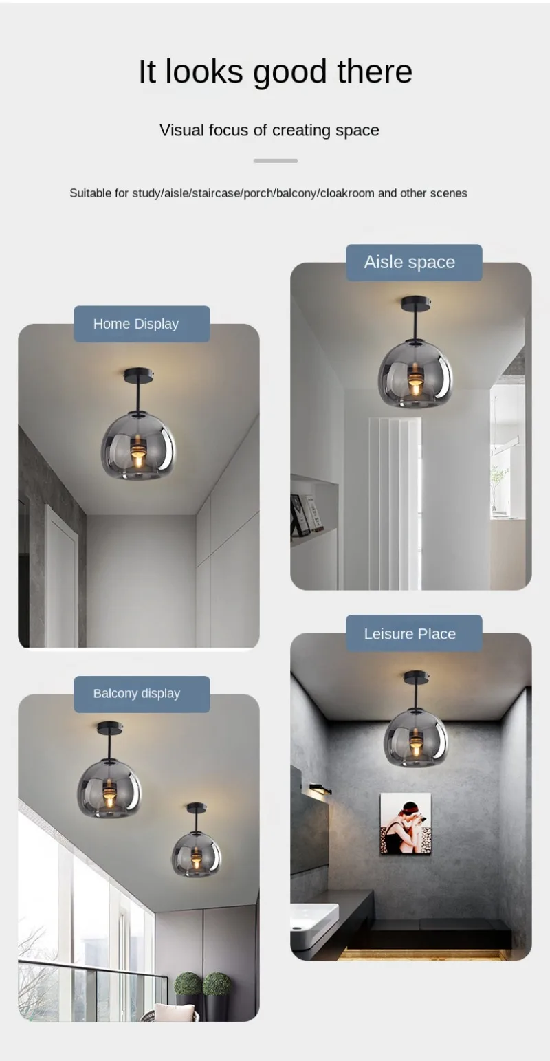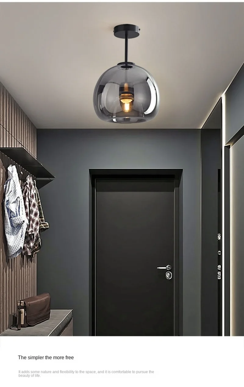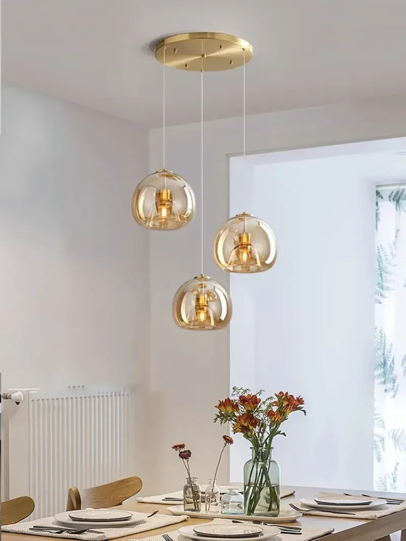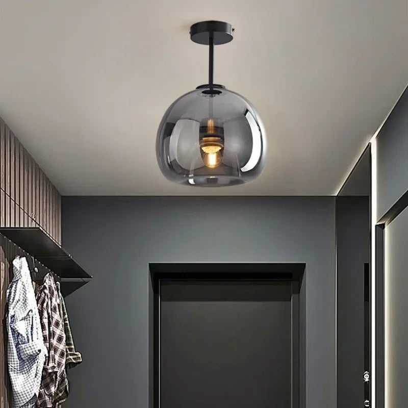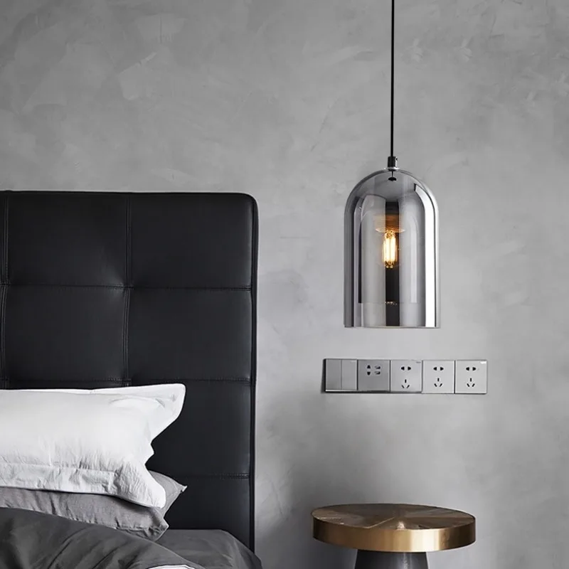 Enhance your interiors with this Nordic Modern Glass Ceiling Lamp, designed for bedrooms, kitchen islands, dining rooms, restaurants, and bar counters. Featuring a sleek dark grey glass shade with plated detailing, this suspended chandelier delivers refined modern elegance while providing efficient daily lighting.