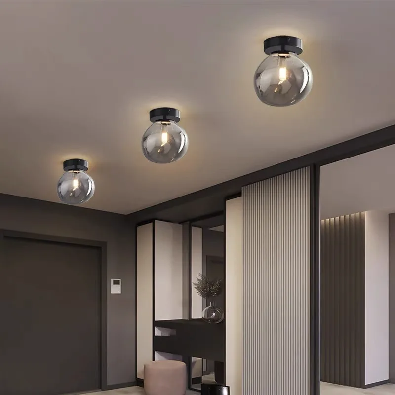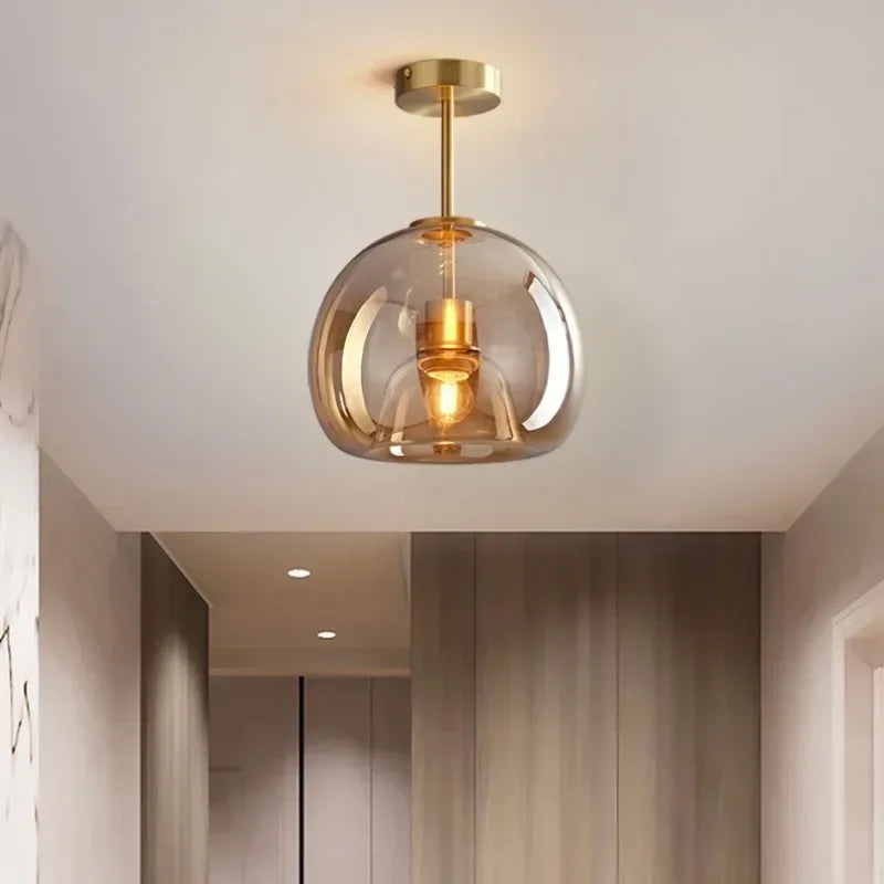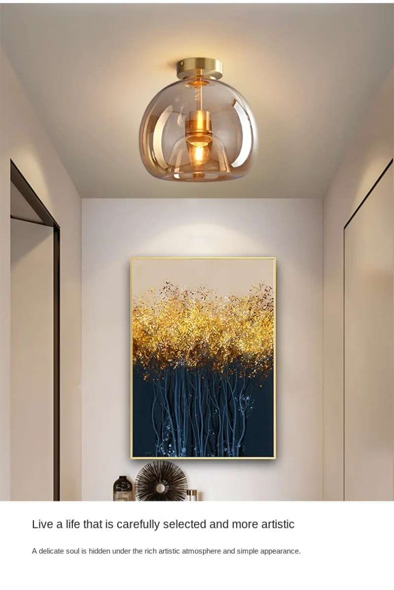 全铜吸顶灯创意门厅过道走廊灯现代轻奢玻璃玄关阳台新款卧室灯具