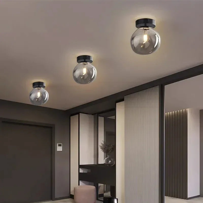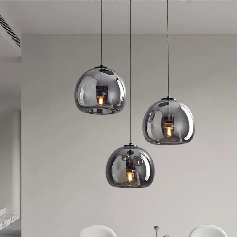 Nordic Modern Glass Pendant Ceiling Lamp – Dark Grey Hanging LED Chandelier