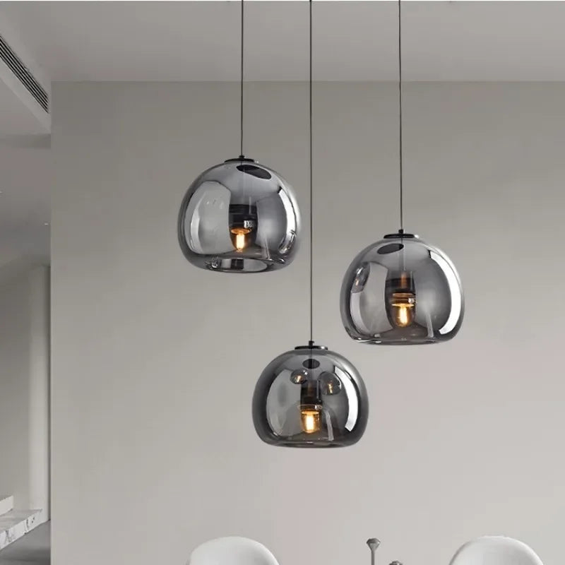 Nordic Modern Glass Pendant Ceiling Lamp – Dark Grey Hanging LED Chandelier - Eco Luxe Décor