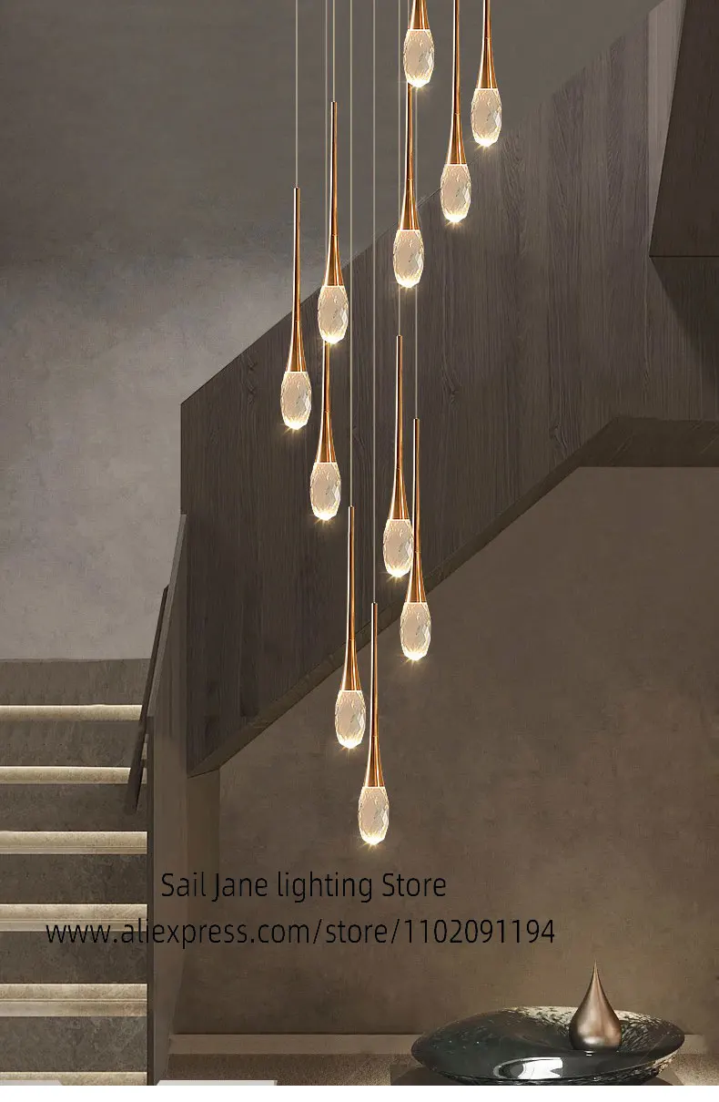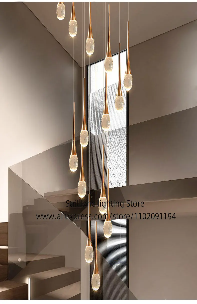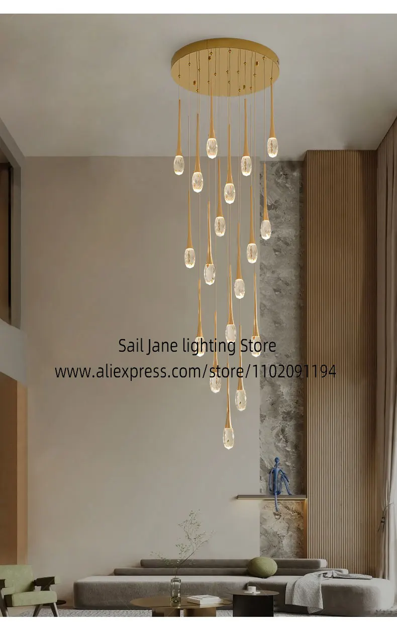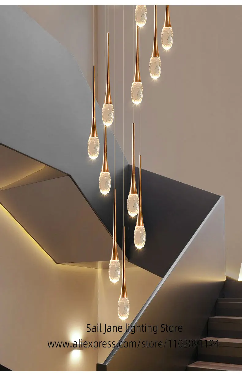 New Chandelier Lighting Ceiling Lamp Led living Room Chandelier Modern Indoor Lustre Hanging Lamp Crystal Staircase Chandelier - Eco Luxe Décor