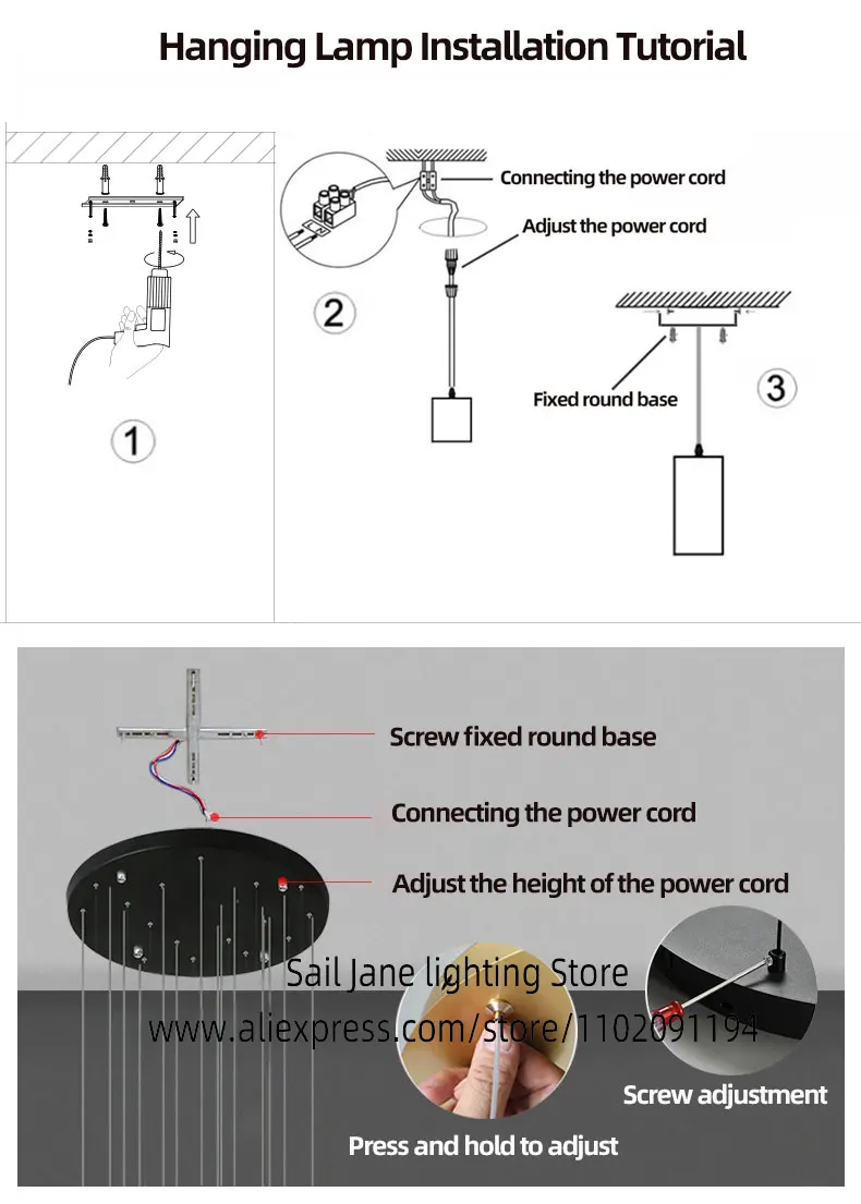 ✨ 2: The installation type of our product is a wire controlled pendant lamp. The number of light sources in our product is 6. Our product voltage is 90-260V. Our product's light source is an LED bulb. Our product process is high-temperature baking paint. Our product has a lighting area of 15-30 square meters.