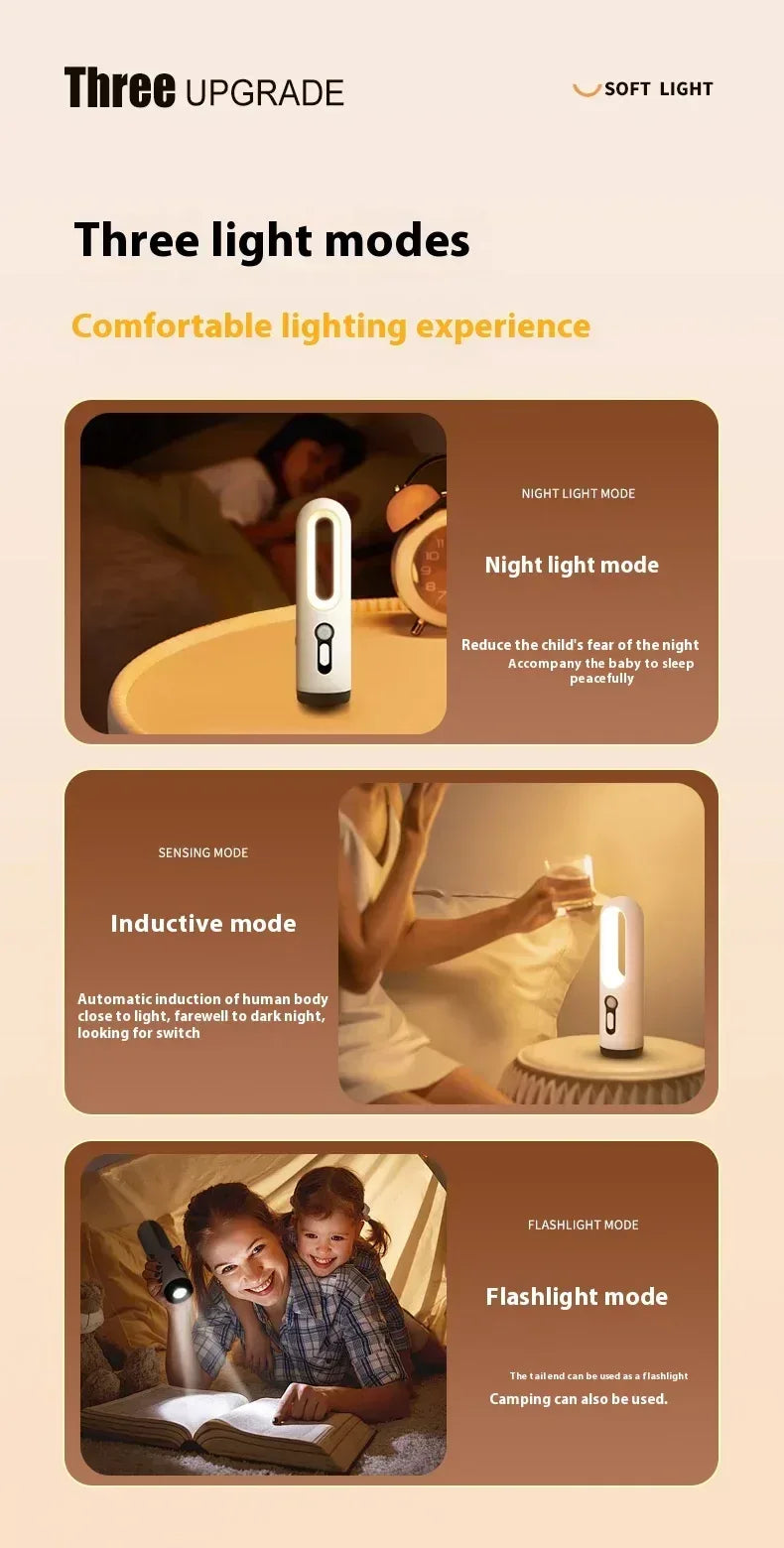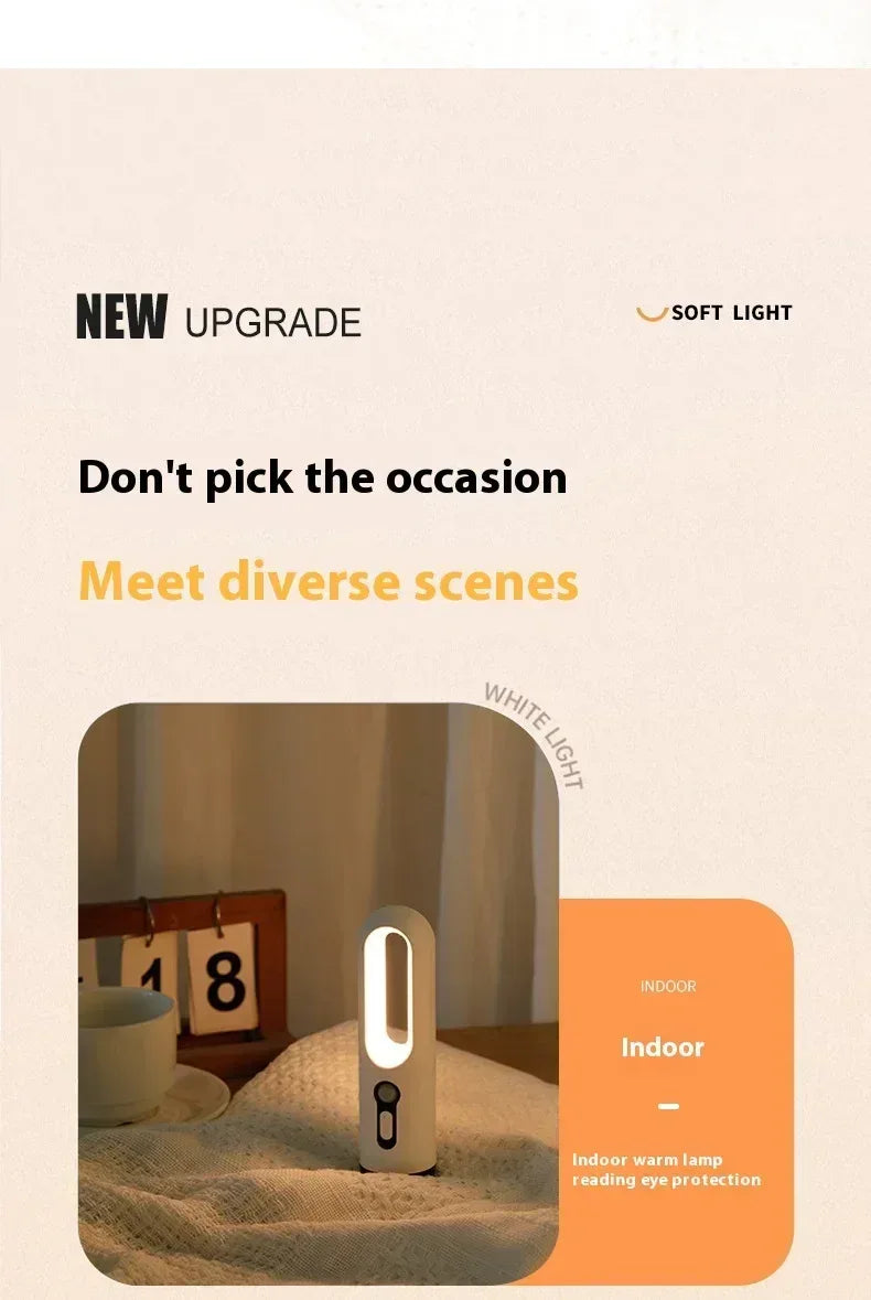 Enjoy smart, flexible lighting with this 2-in-1 LED motion sensor night light and portable flashlight. Designed for everyday convenience, it works as an automatic night lamp in motion-sensor mode and easily converts into a handheld flashlight when needed. The soft LED light is gentle on the eyes, making it ideal for baby feeding, nighttime reading, and bathroom use. Equipped with a rechargeable lithium battery, it offers long-lasting performance and easy USB charging. Compact and lightweight, this multi-purpose lamp is perfect for bedrooms, bathrooms, hallways, camping, and emergency situations.