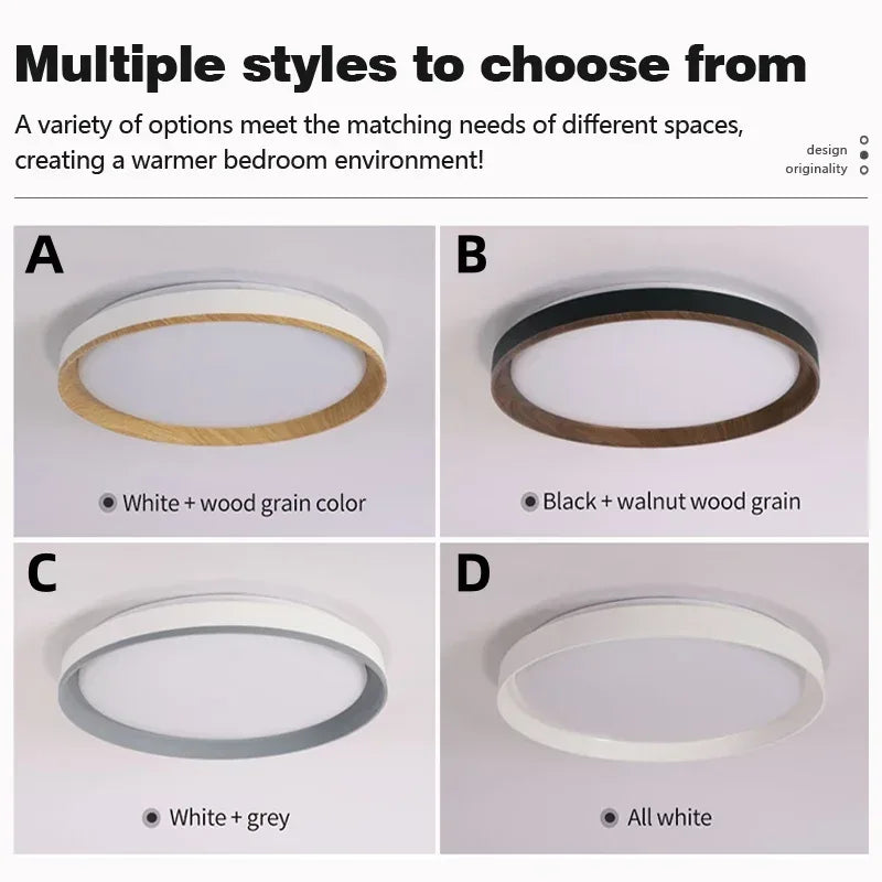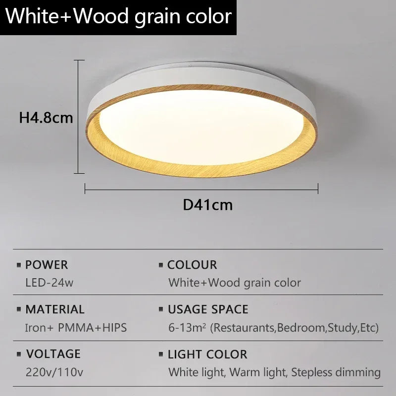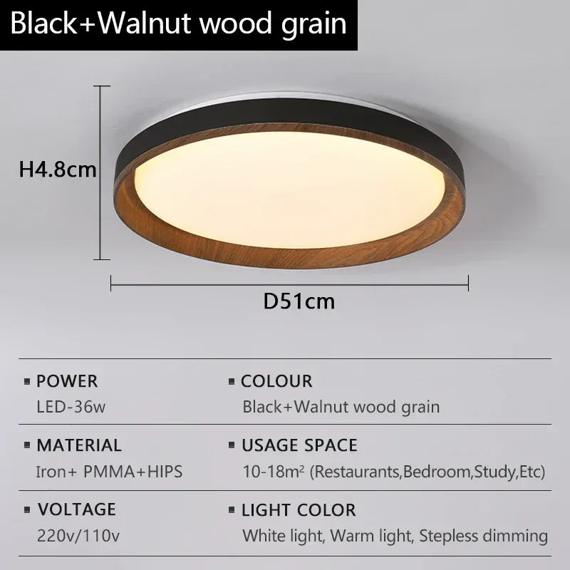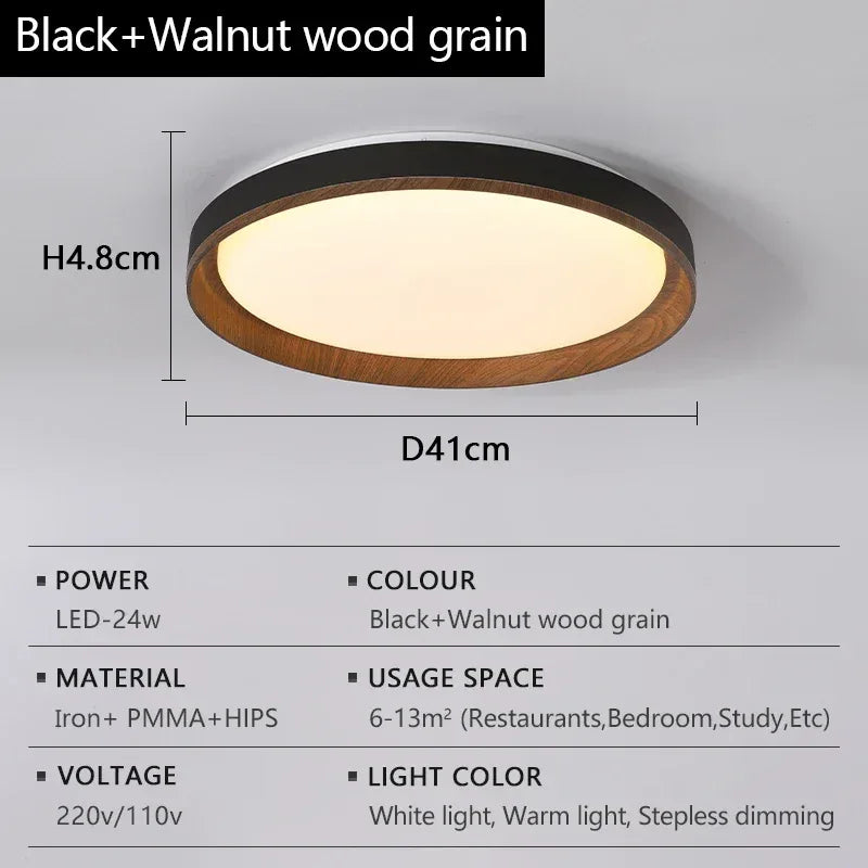 Nordic Style Black White Gray LED Bedroom Study Ceiling Lamps Modern Minimalism Wood Grain Living Dining Room Home Decor Lights