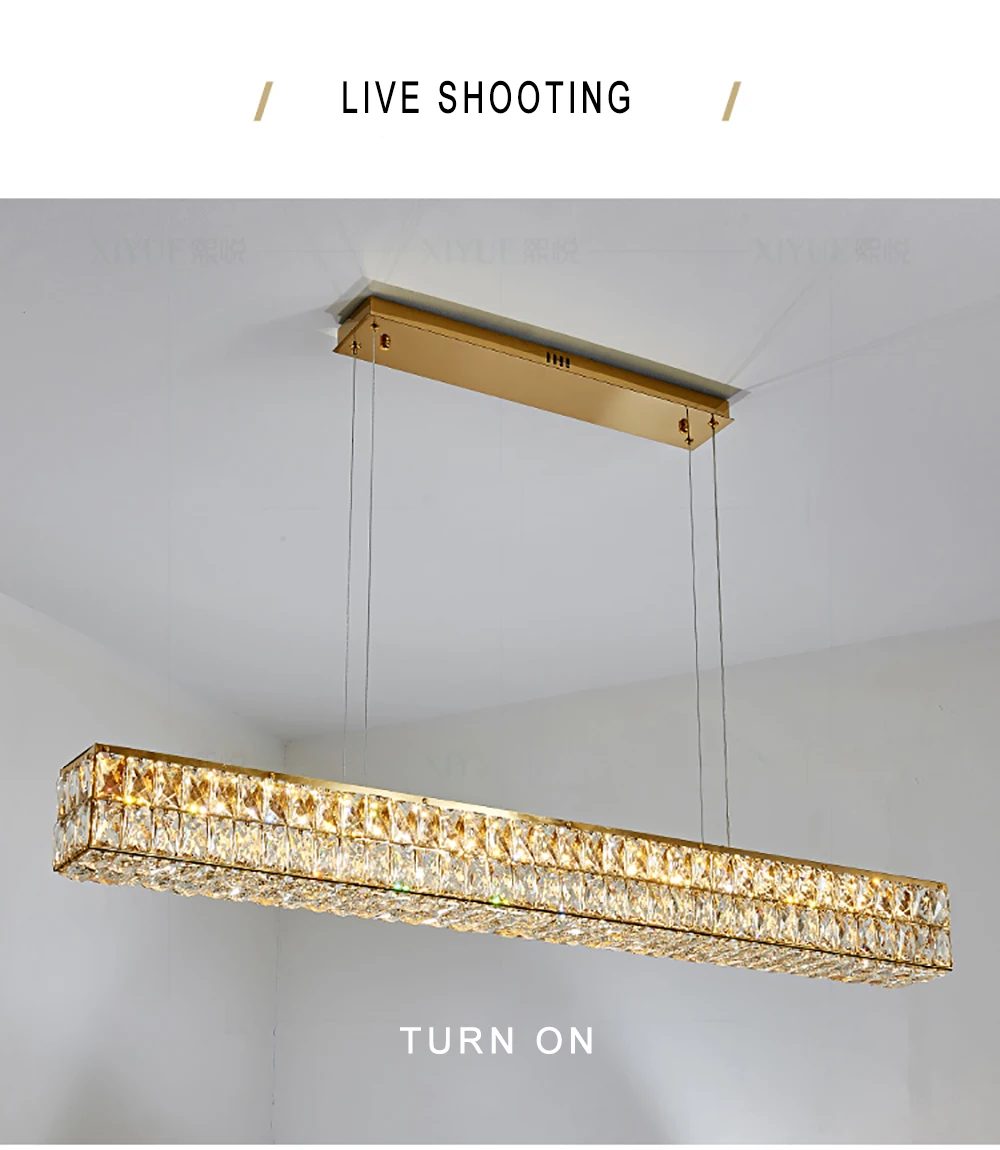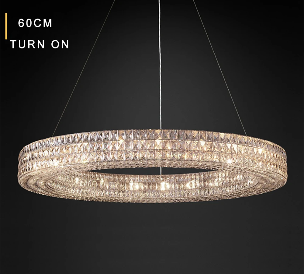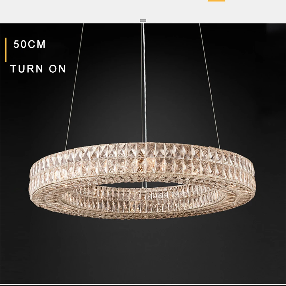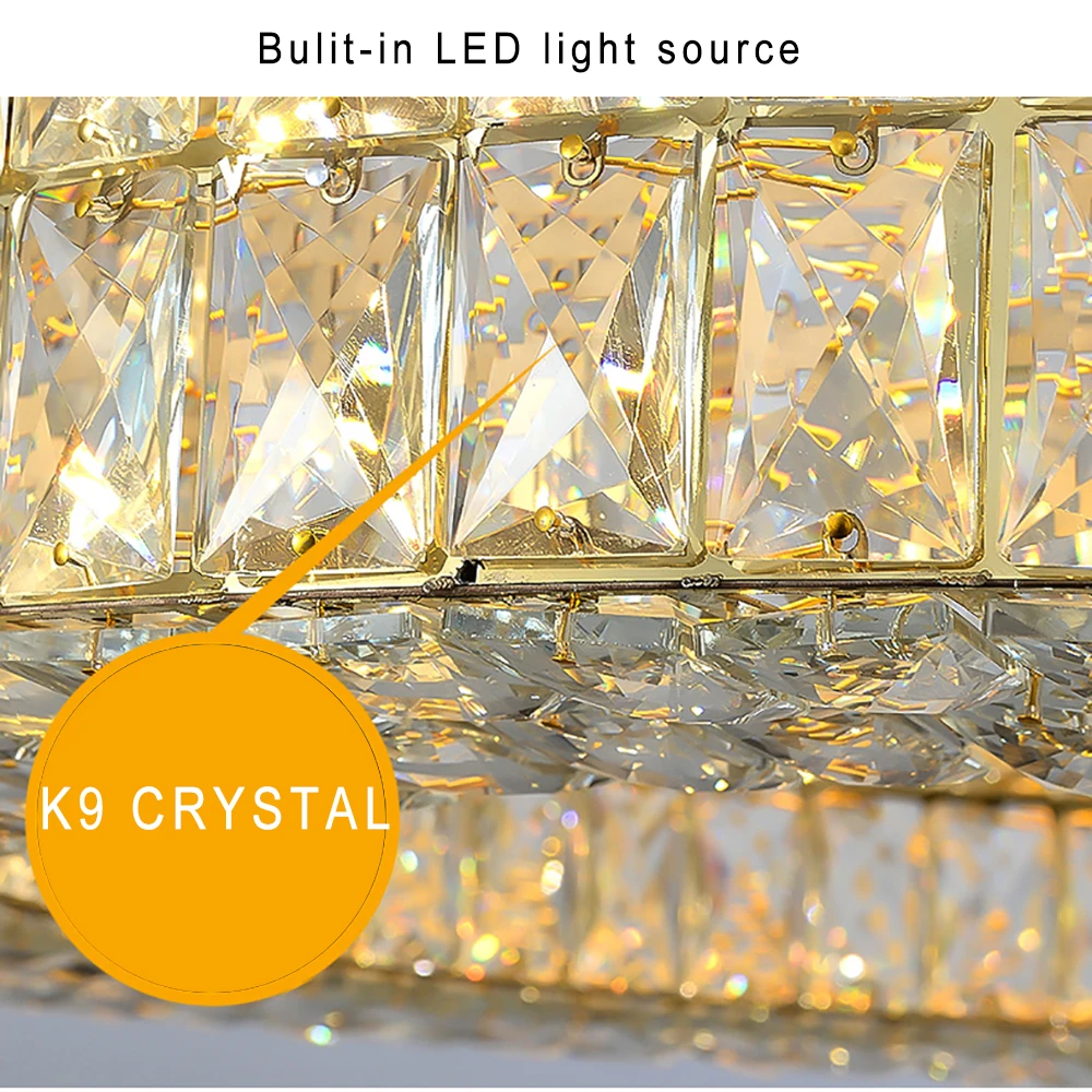 Crafted from high-quality crystal, the Luxury Crystal Living Room Chandelier Pendant Lamp offers adjustable brightness and elegant design. It requires LED bulbs (not included) for energy efficiency and long-lasting performance.