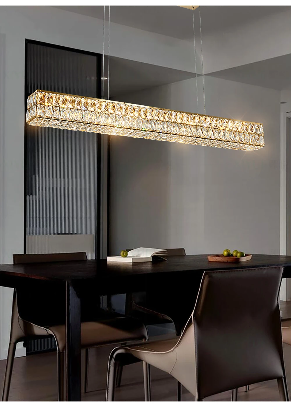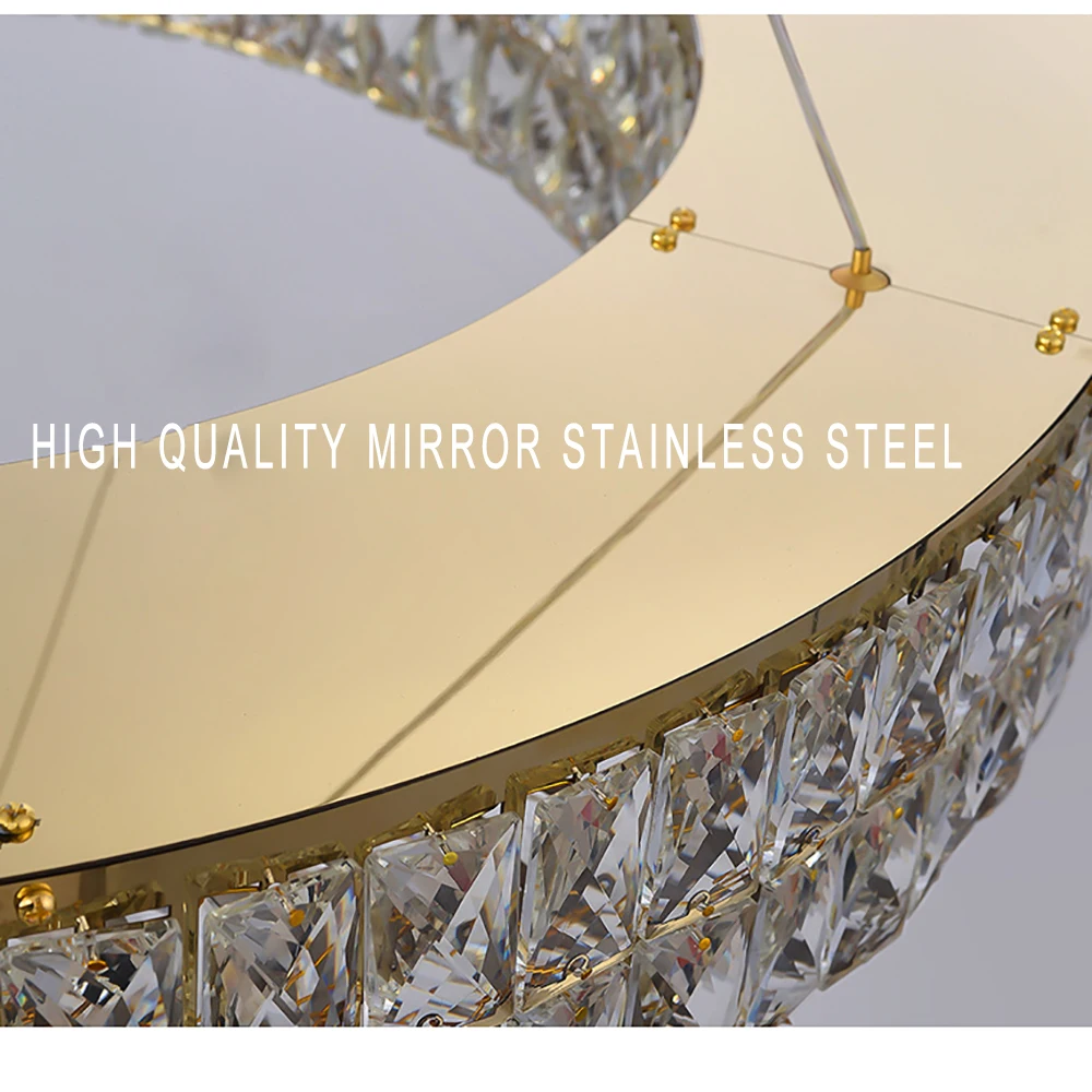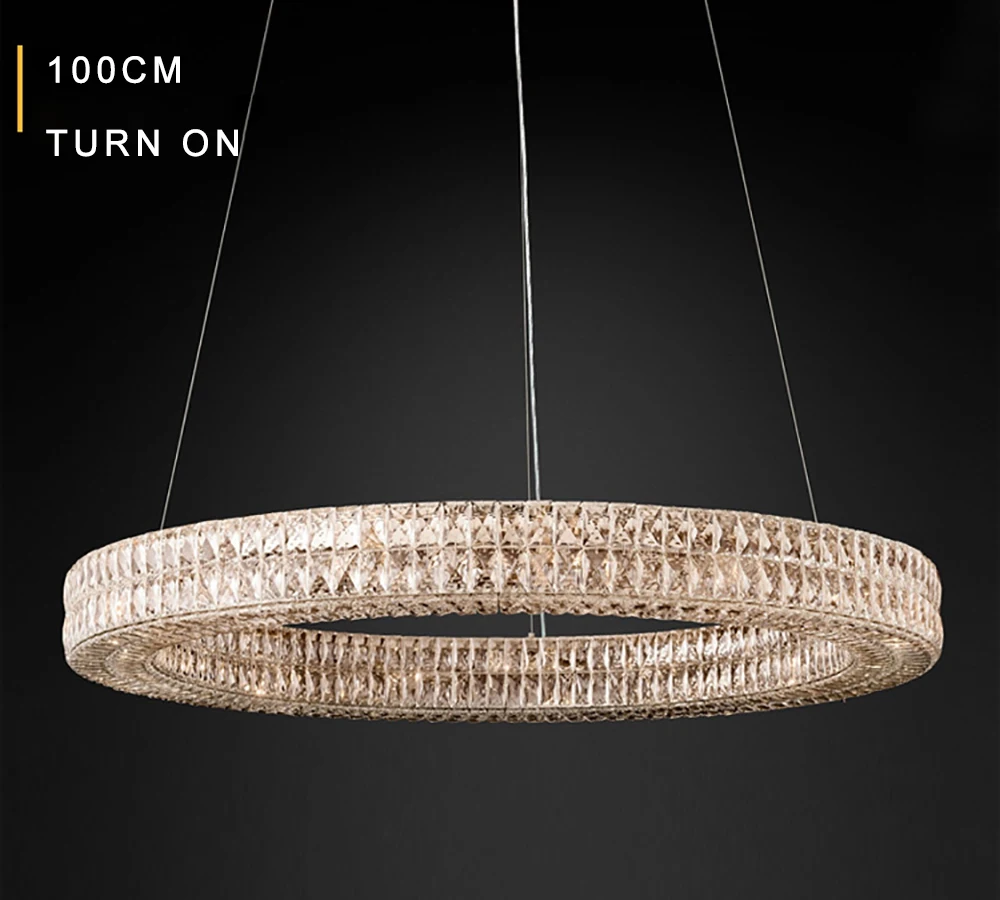 Crafted from high-quality crystal, the Luxury Crystal Living Room Chandelier Pendant Lamp offers adjustable brightness and elegant design. It requires LED bulbs (not included) for energy efficiency and long-lasting performance.