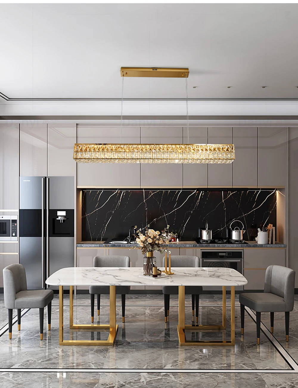 Perfect for those seeking to make a bold statement in their interior decor, this pendant light adds a touch of luxury and sophistication to large living spaces.