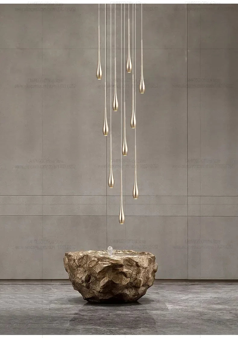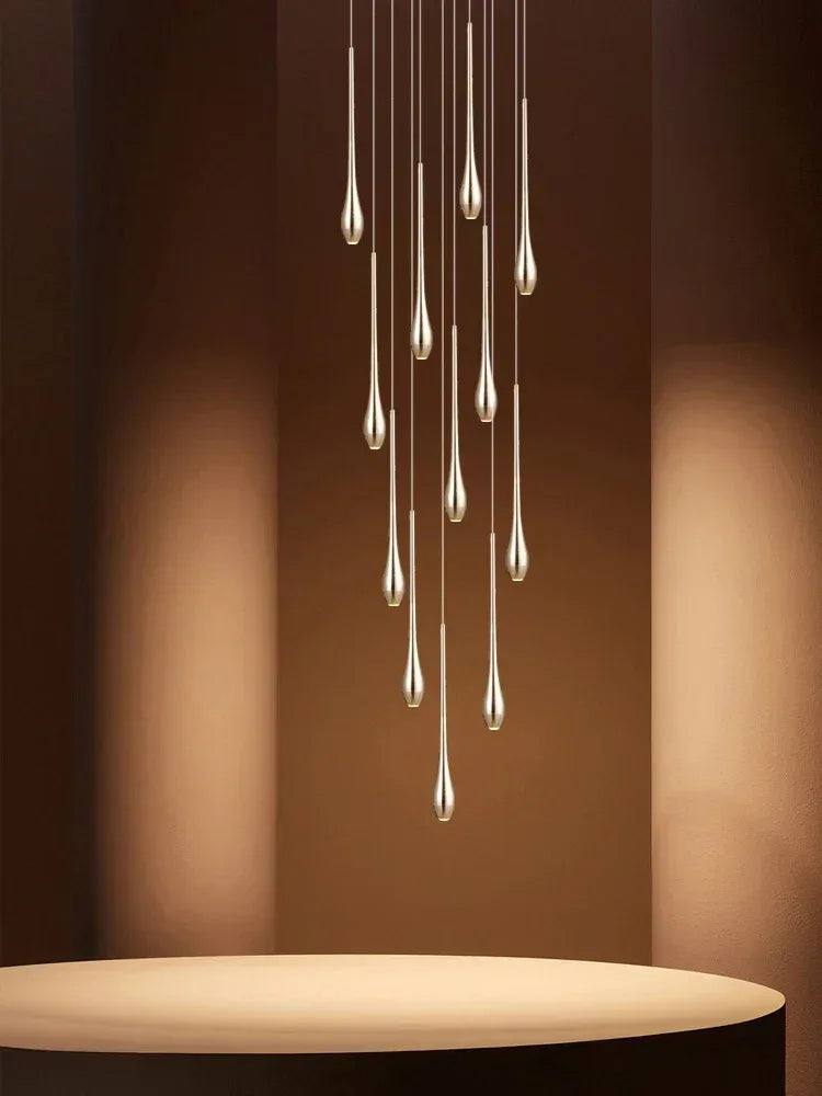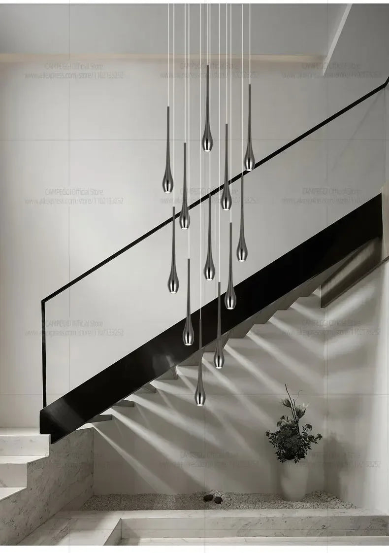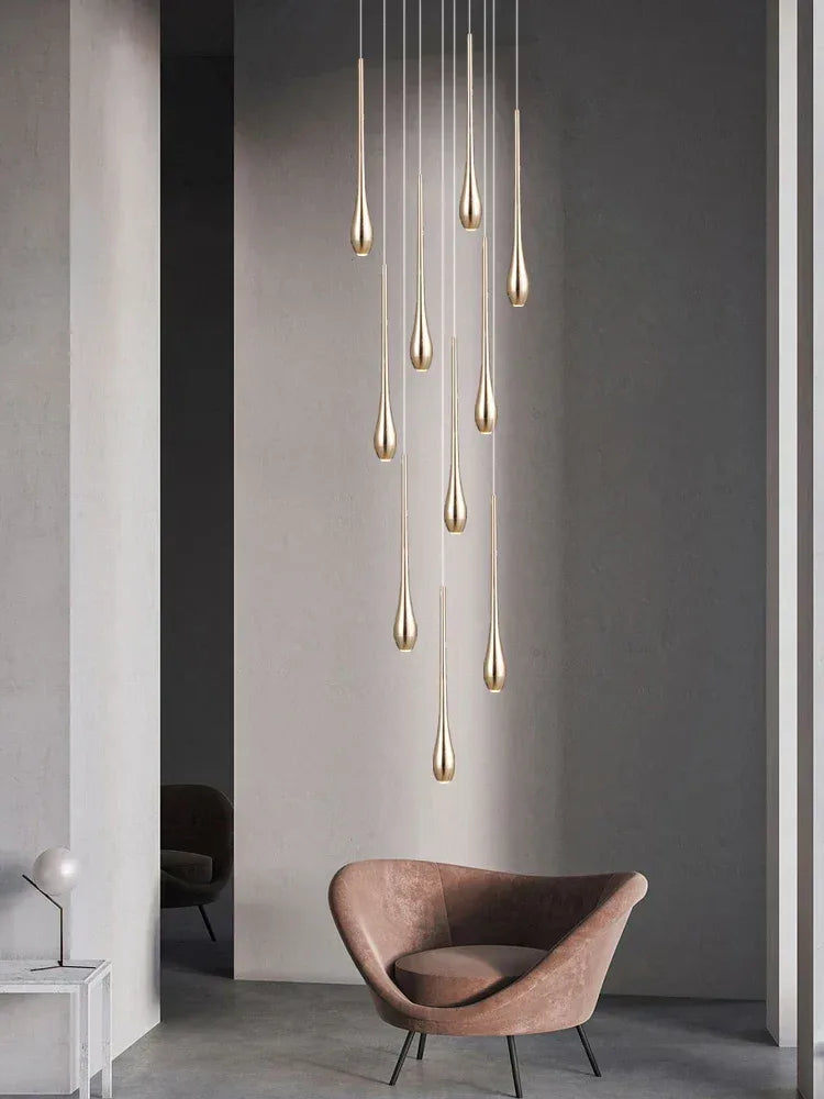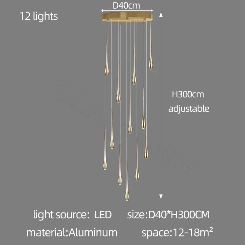 Nordic Double-Layer Gold LED Staircase Pendant Light – Modern Villa & Living Room Chandelier - Eco Luxe Décor
