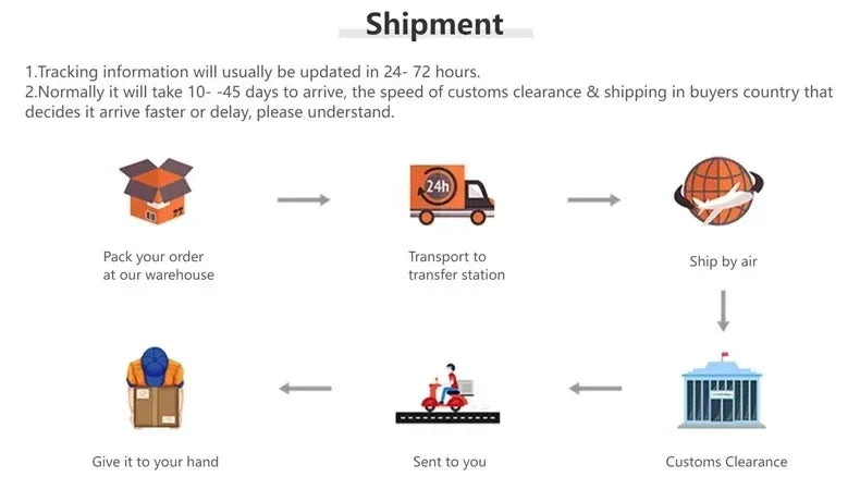 2. Entrega rápida : espere que su pedido llegue dentro de 5 a 10 días después del envío, lo que garantiza que reciba sus artículos rápidamente.