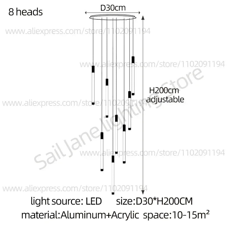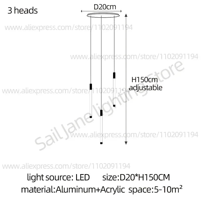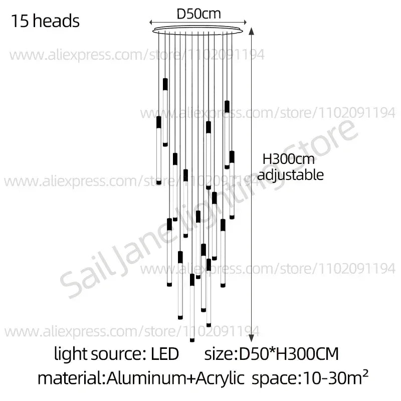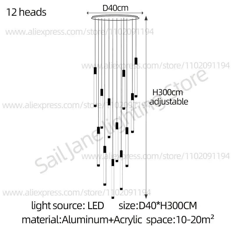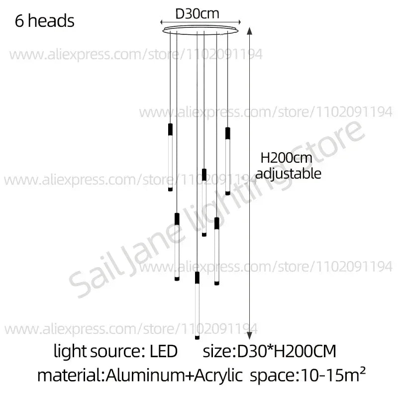 Take a look ✨: Long LED Pendant Lamp Hanging Modern Living Room Lamp Villa Staircase Pendant Lamp Spotlight Indoor Lighting Tubular Chandelier