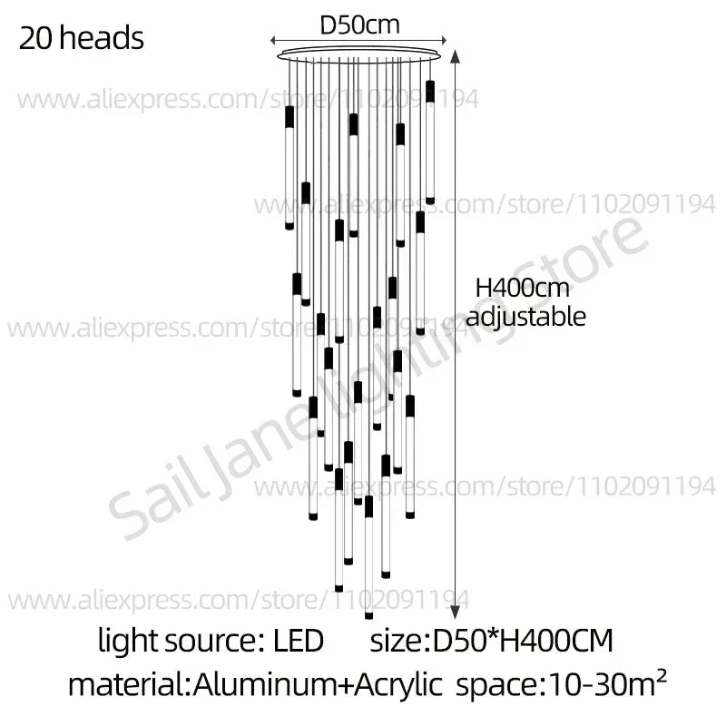 LED Staircase Modern Chandelier Luxury Villa Living Room Lighting Penthouse Home Decor Restaurant Bright High-Rise Chandelier - Eco Luxe Décor