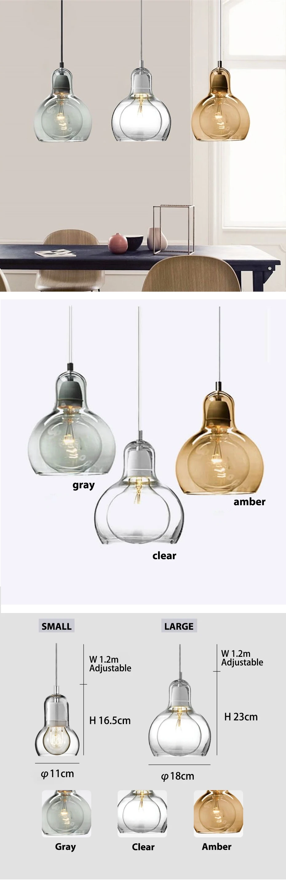 Mega Bulb Pendant Lamp Nordic Light Modern And Tradition Clear Amber Gray Blown Glass Restaurant Kitchen Cafe Bar Fixture Lights