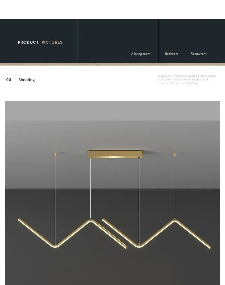 Modern Nordic Gold LED Pendant Light – Z Shape Hanging Chandelier for Restaurant & Kitchen - Eco Luxe Décor