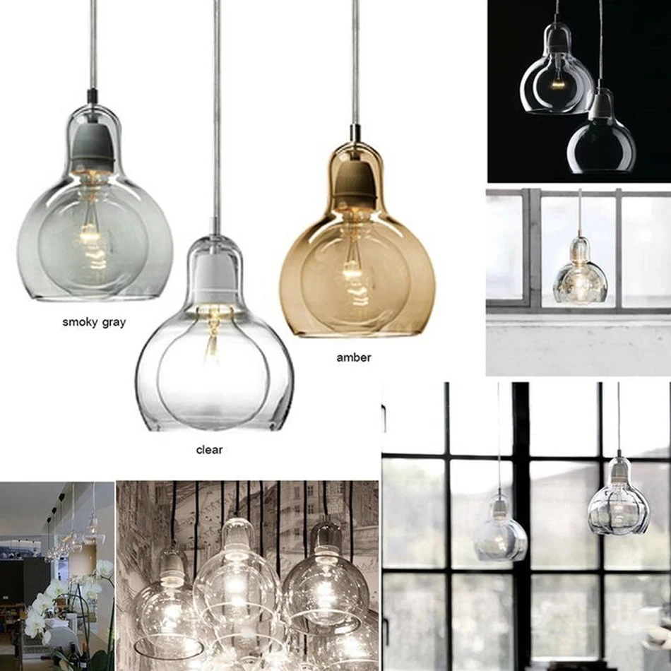Mega Bulb Pendant Lamp Nordic Light Modern And Tradition Clear Amber Gray Blown Glass Restaurant Kitchen Cafe Bar Fixture Lights