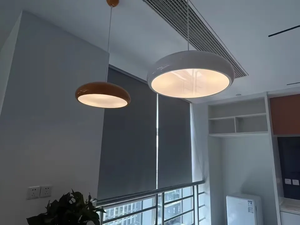 Illuminate your living spaces with the stylish LED Nordic pendant light, available in sizes of 35cm, 45cm, and 60cm to suit various room dimensions. This round-shaped luminaire adds a touch of modern elegance to your parlor, study, master bedroom, other bedrooms, hotel halls, or hotel rooms, enhancing the ambiance with its vibrant macaron-colored lampshades.