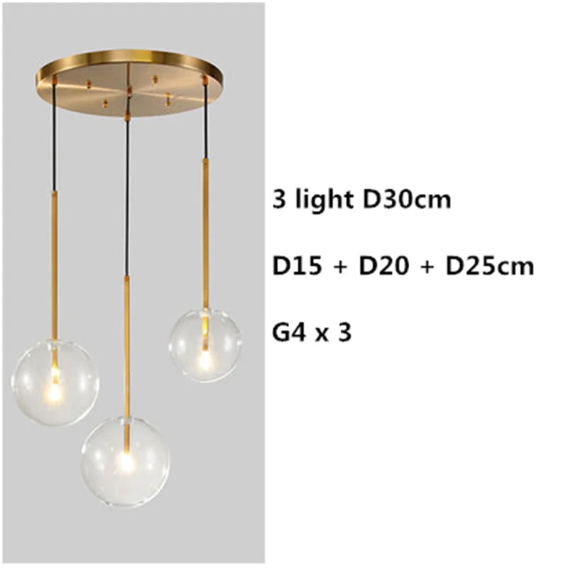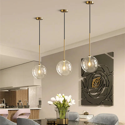 Lámpara colgante LED moderna de cristal transparente con forma de globo para comedor, lámpara colgante LED de metal, lámpara colgante LED, lámpara colgante LED