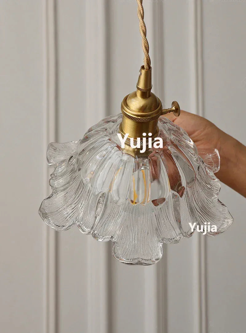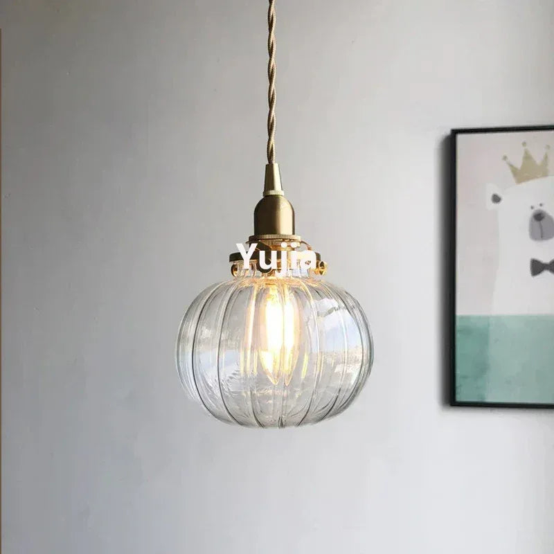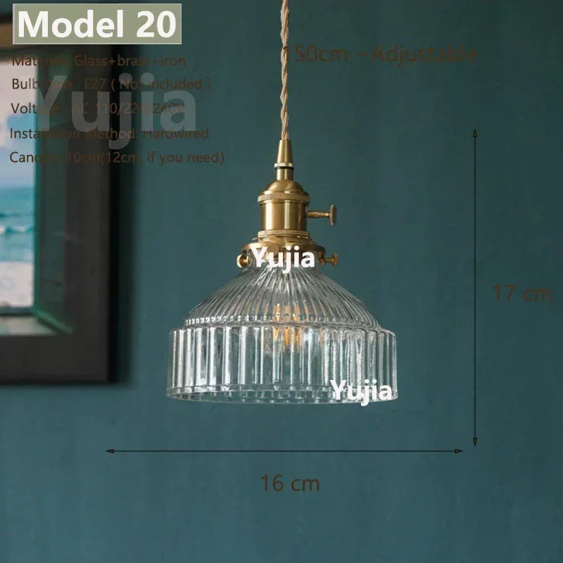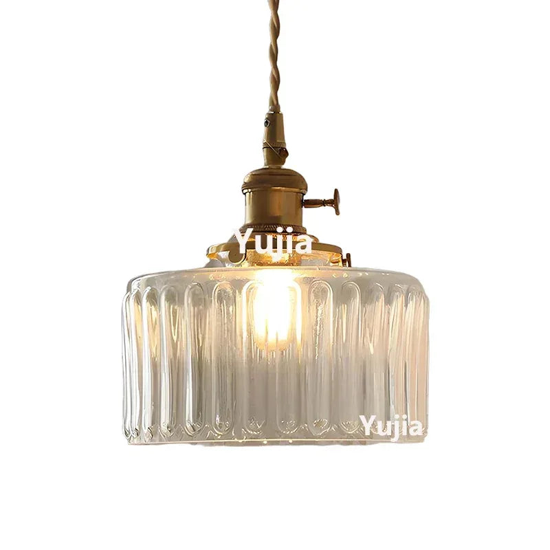 Vintage Clear Glass Pendant Light – Brass Farmhouse Hanging Lamp for Kitchen & Dining - Eco Luxe Décor