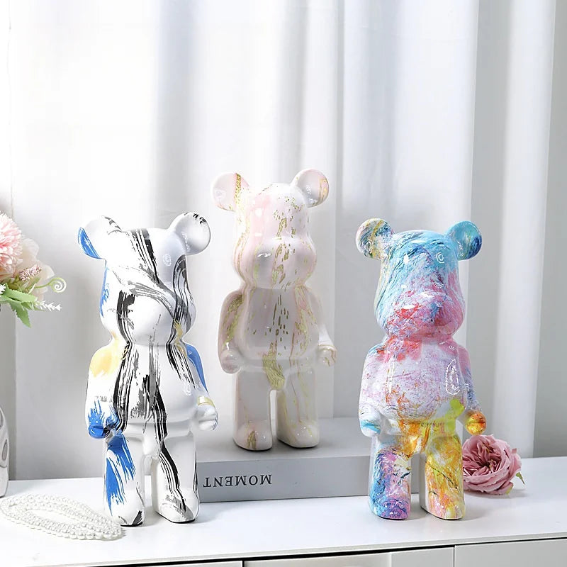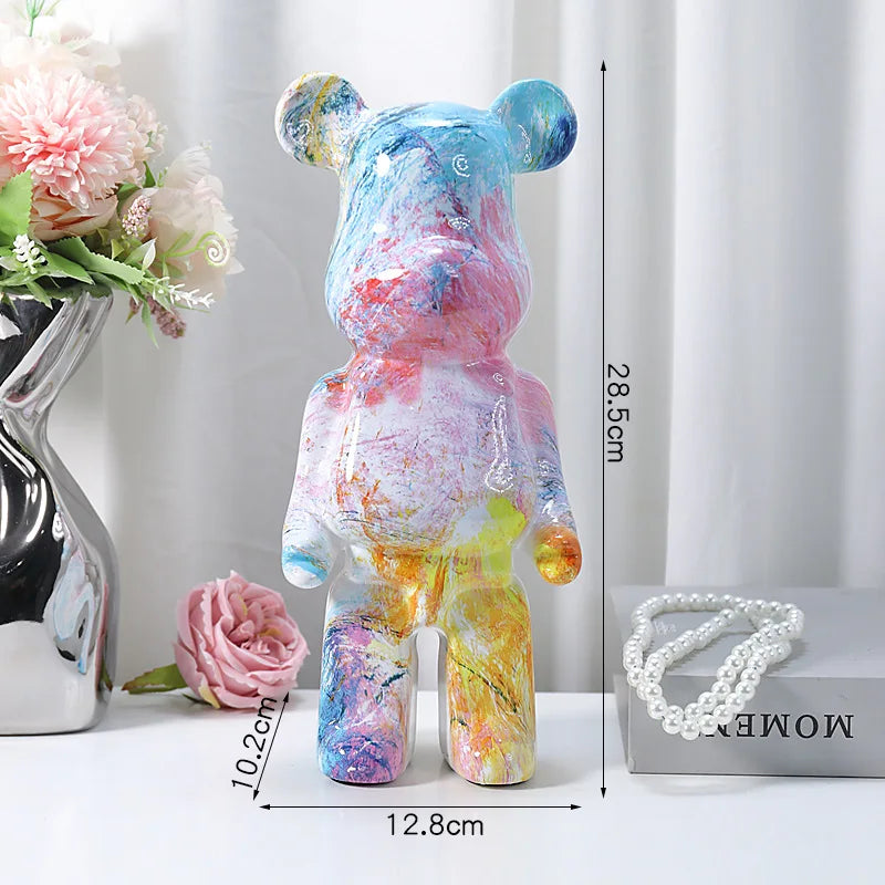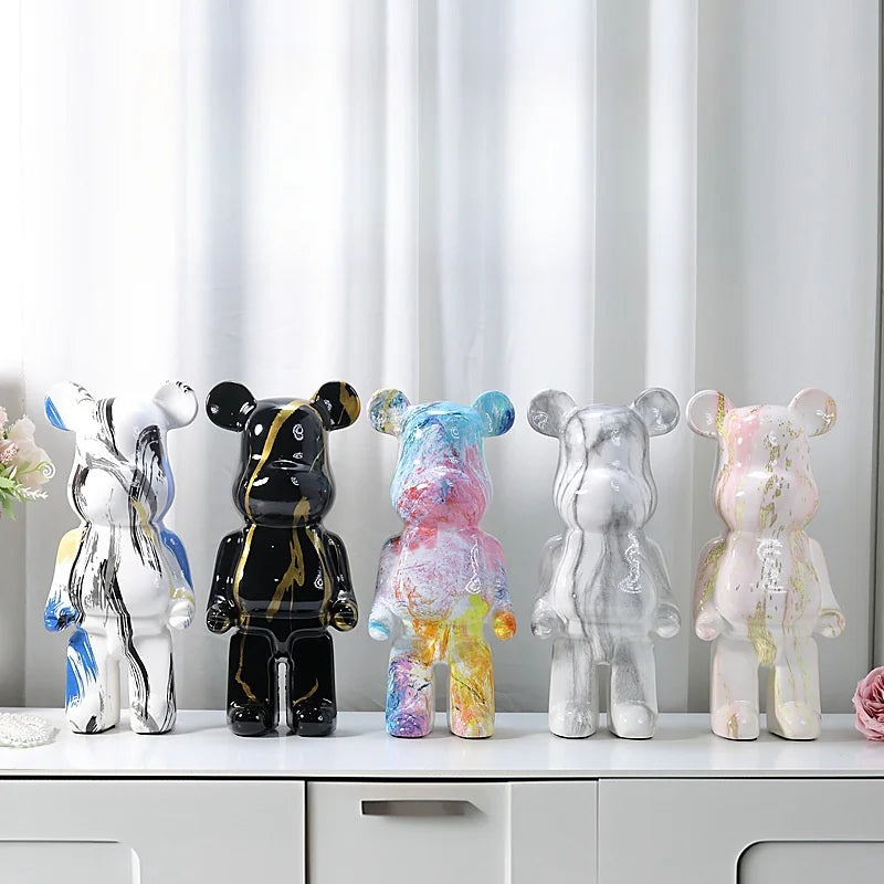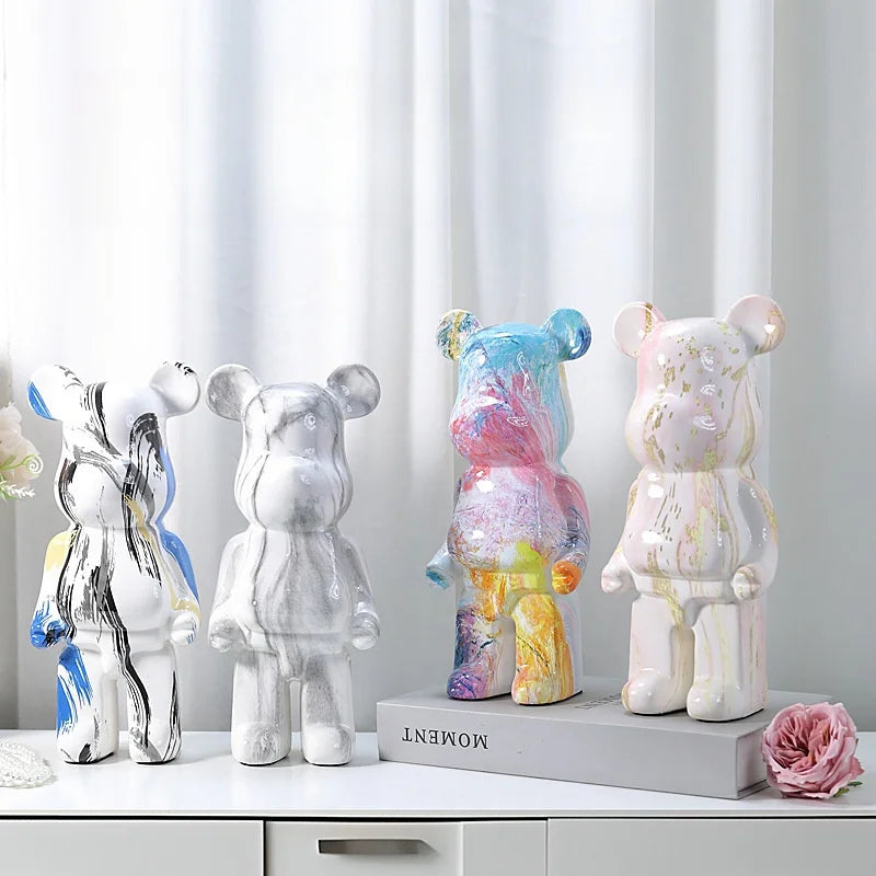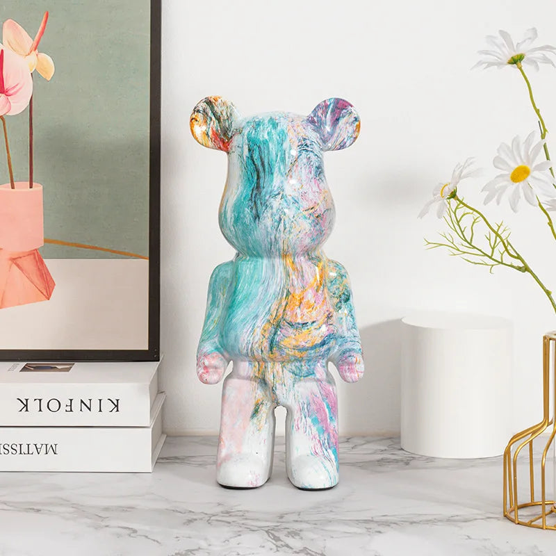 Aesthetic Resin Bear Statue – Marbling Art Sculpture for Living Room & Office