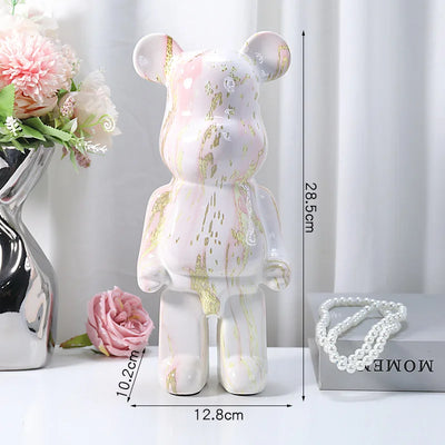 28cm Aesthetic Figurine Resin Marbling Violent Bear Statue Sculpture Decor Luxury Living Room Decoration Home Ornament