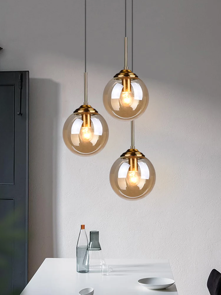 Crafted with high-quality alloy and featuring exquisite plated detailing, these pendant lights exude sophistication and style. The glass ball design, available in transparent, amber, and smoky gray options, adds a touch of modern flair to any space.
