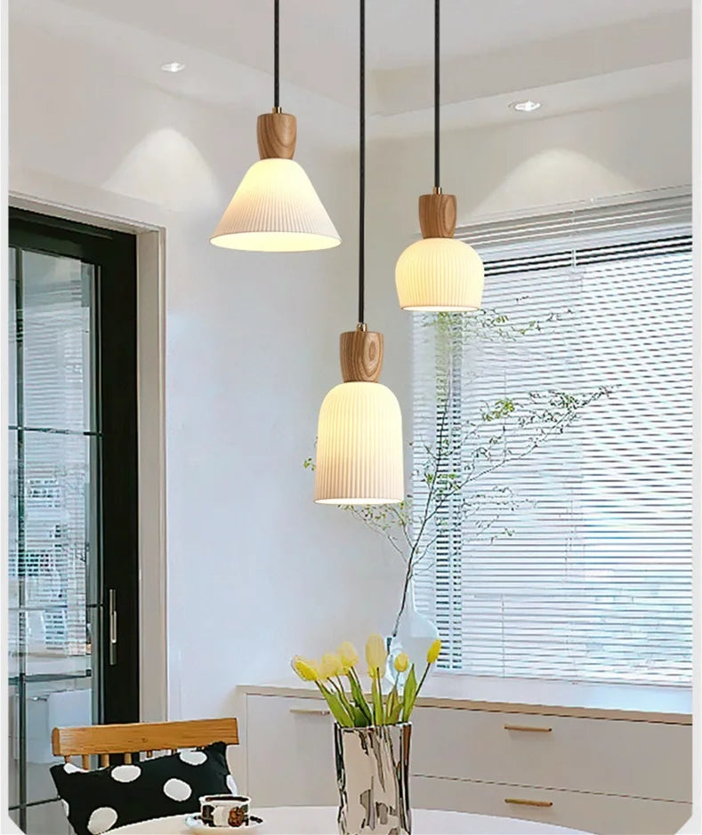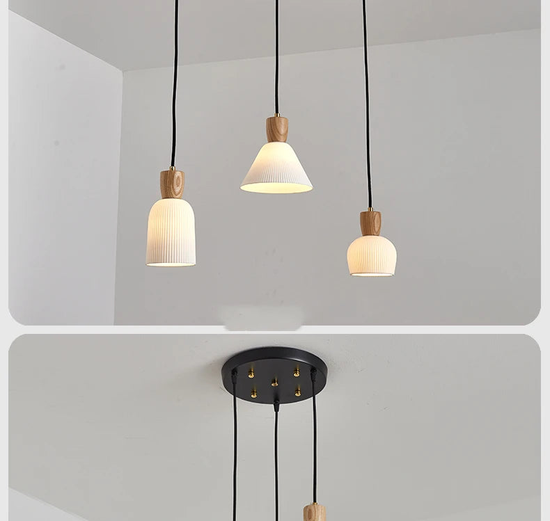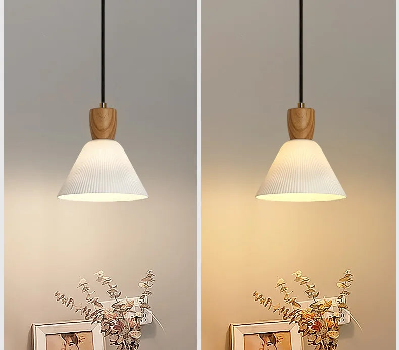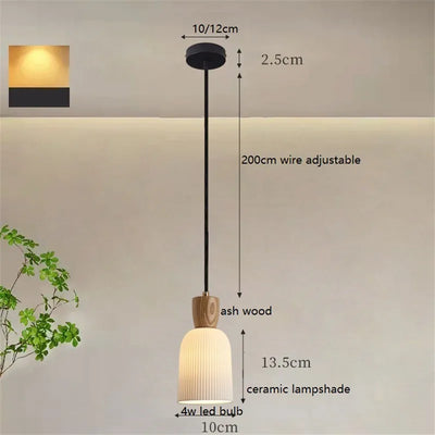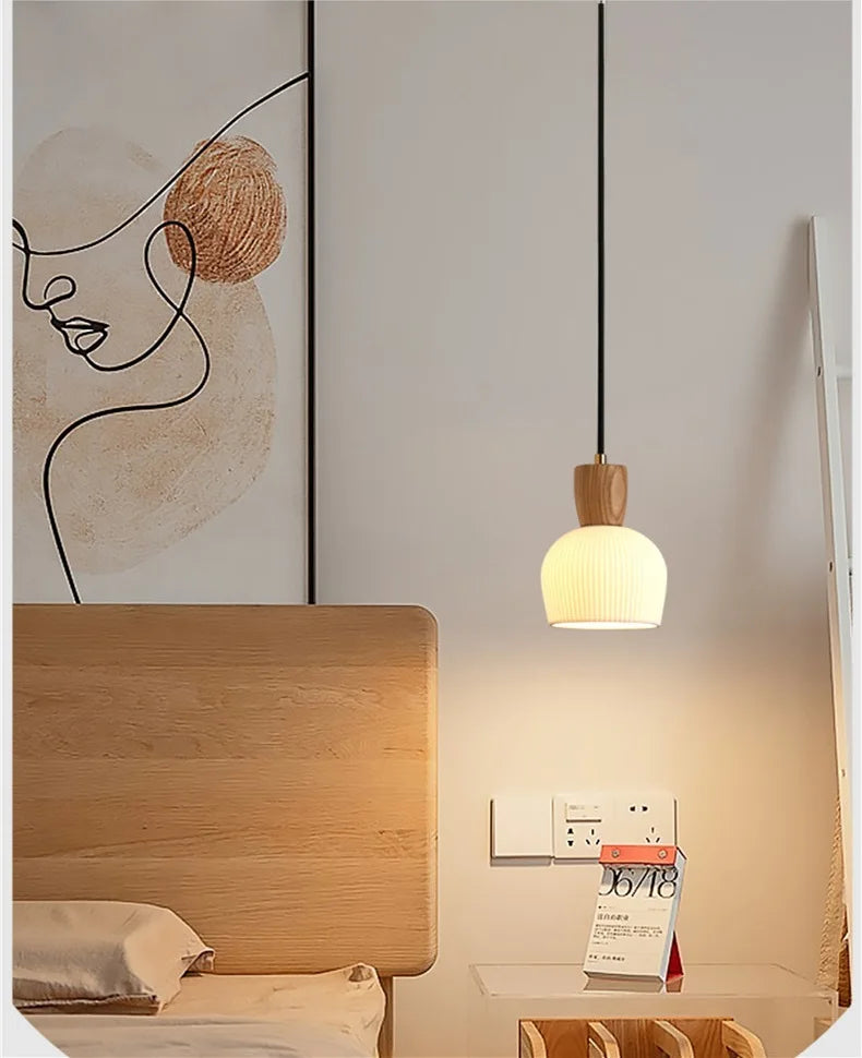 IWHD Mini Ash Ceramic LED Pendant Light - Modern Nordic Hanging Lamp for Bedroom, Living Room, Bar & Restaurant Decor