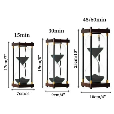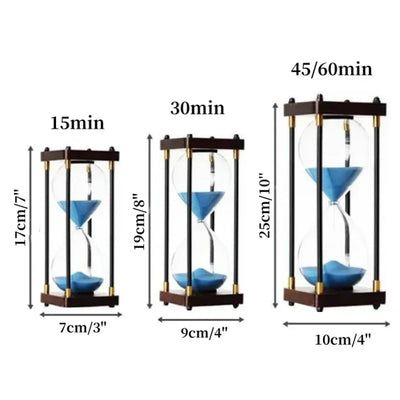 Luxury Retro Hourglass Timer – Wooden Base, 15-60 Minutes for Home, Office & Study Decor