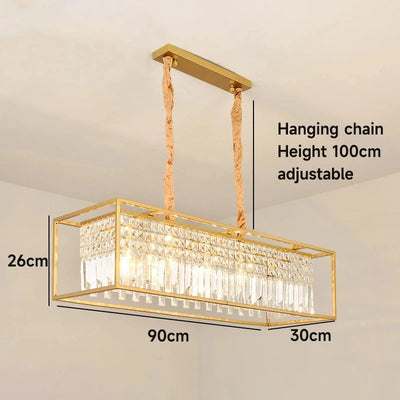 Enhance your dining room or kitchen island with the Modern Crystal Chandelier, blending luxury and modern design. This exquisite chandelier features a sleek rectangular shape with a mix of black and gold finishes, making it a striking addition to contemporary home decor themes.