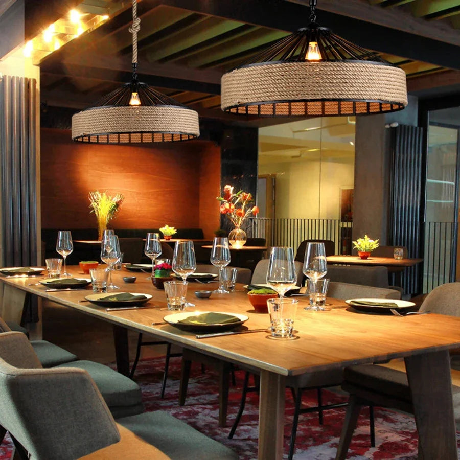 Modern Hemp Rope Pendant Hanging Lamp – Classic Antique Industrial Style for Dining & Living Spaces