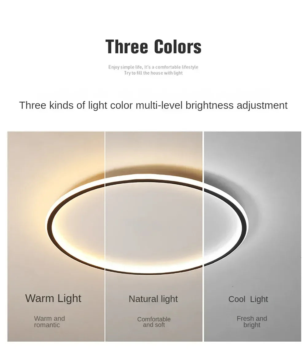 Enhance your home lighting with this Modern LED Ceiling Light, designed with a sleek circular frame for a touch of contemporary elegance. Suitable for living rooms, bedrooms, aisles, and balconies, this versatile ceiling lamp features a remote-controlled dimming function, allowing you to easily adjust the brightness for any ambiance. The fixture is surface-mounted, providing a polished finish and sturdy build with materials like aluminum, ironware, and acrylic, making it both durable and stylish. Available in Black, White, and Gold, this light complements a range of interior styles.