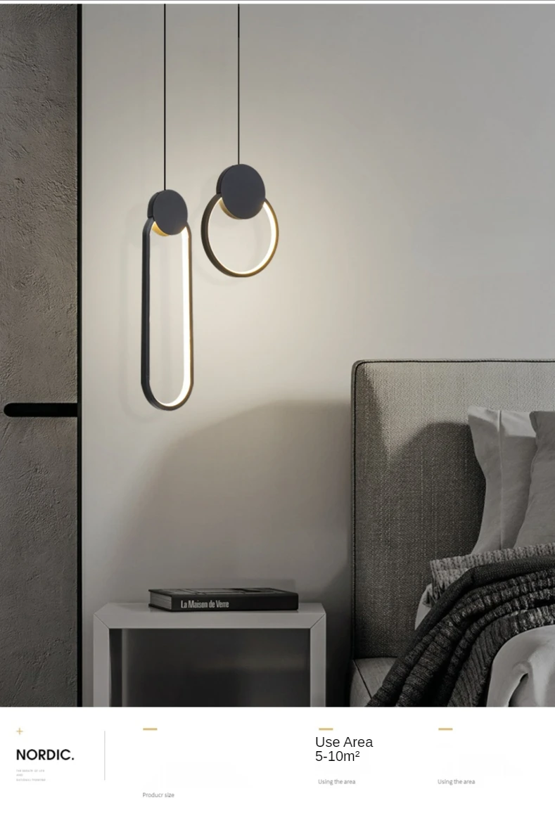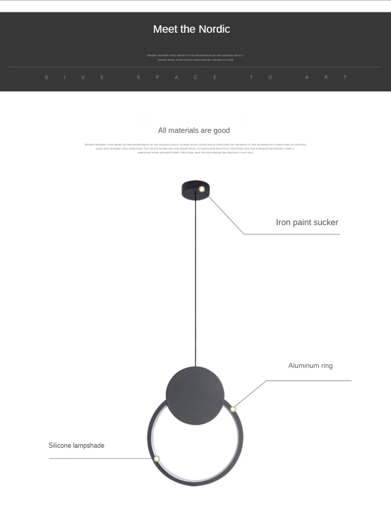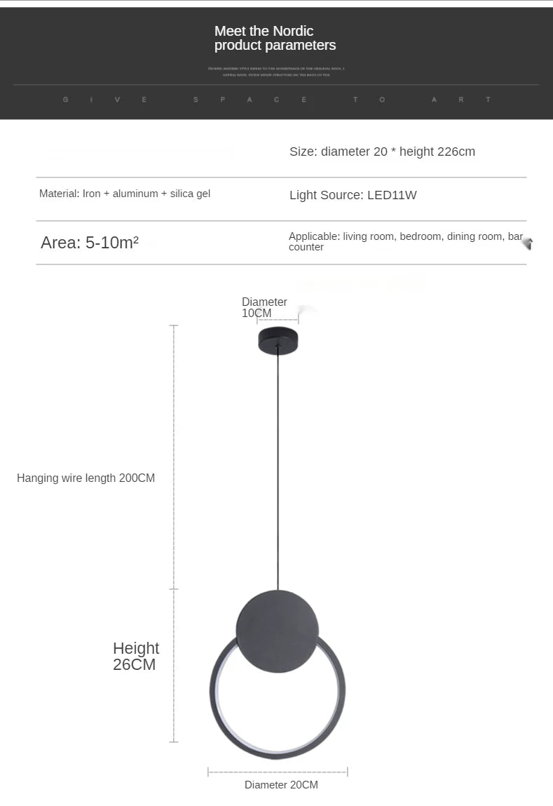 Crafted from durable aluminum, silica gel, and iron materials, the pendant light provides balanced illumination through an integrated LED light source. The elegant ring design creates soft ambient lighting that complements modern home décor while offering practical illumination for everyday use.