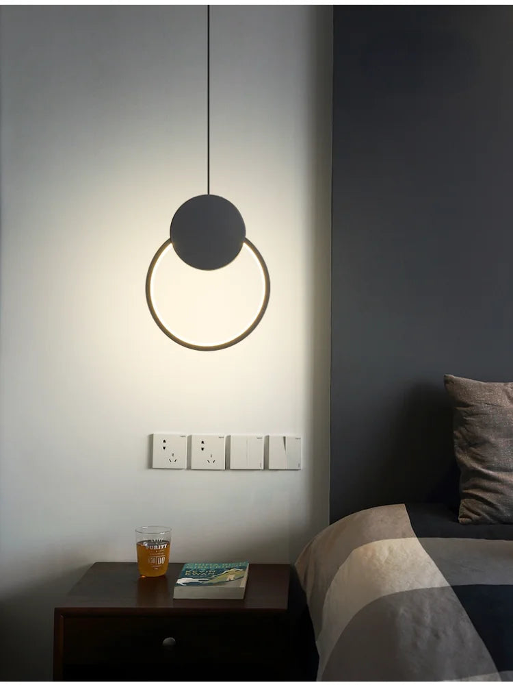 The Modern LED Circle Pendant Light combines minimalist design with elegant illumination, making it an excellent decorative lighting solution for bedrooms, dining rooms, and contemporary living spaces.