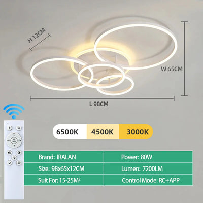 The Modern LED Circle Ring Chandelier is a sleek and stylish ceiling light fixture designed to elevate the look of any room. Featuring a minimalist design, this chandelier adds a modern touch with its simple colors and versatile rings. Made from high-quality aluminum and acrylic, the light offers excellent durability and light transmission. Perfect for living rooms, bedrooms, studies, or offices, this chandelier enhances your space with energy-efficient LED lighting. With the added benefit of three-tone dimming control via remote, you can customize the ambiance of your room to your preference.