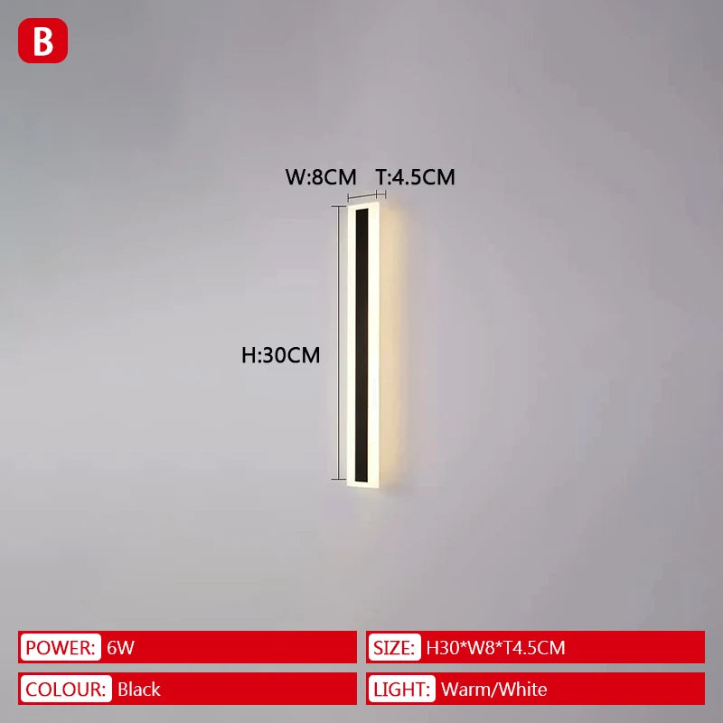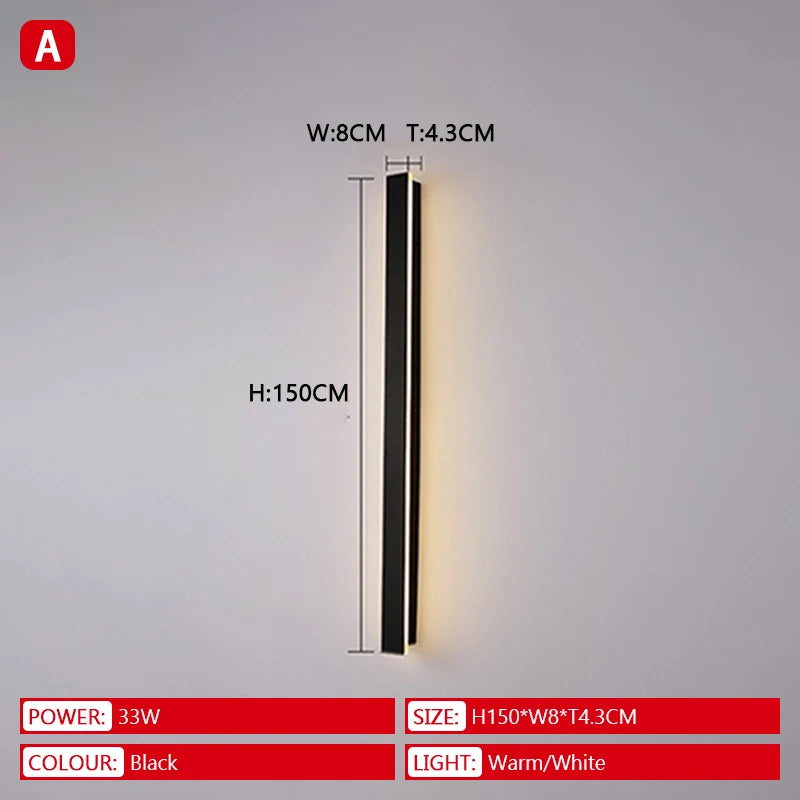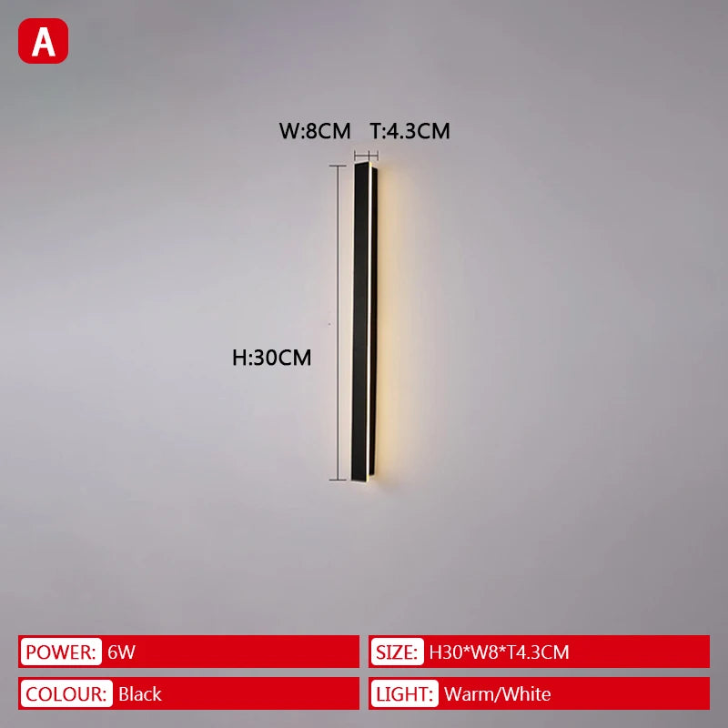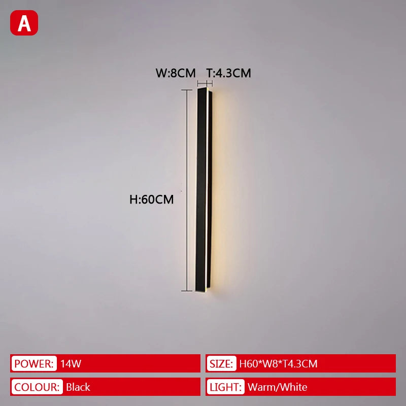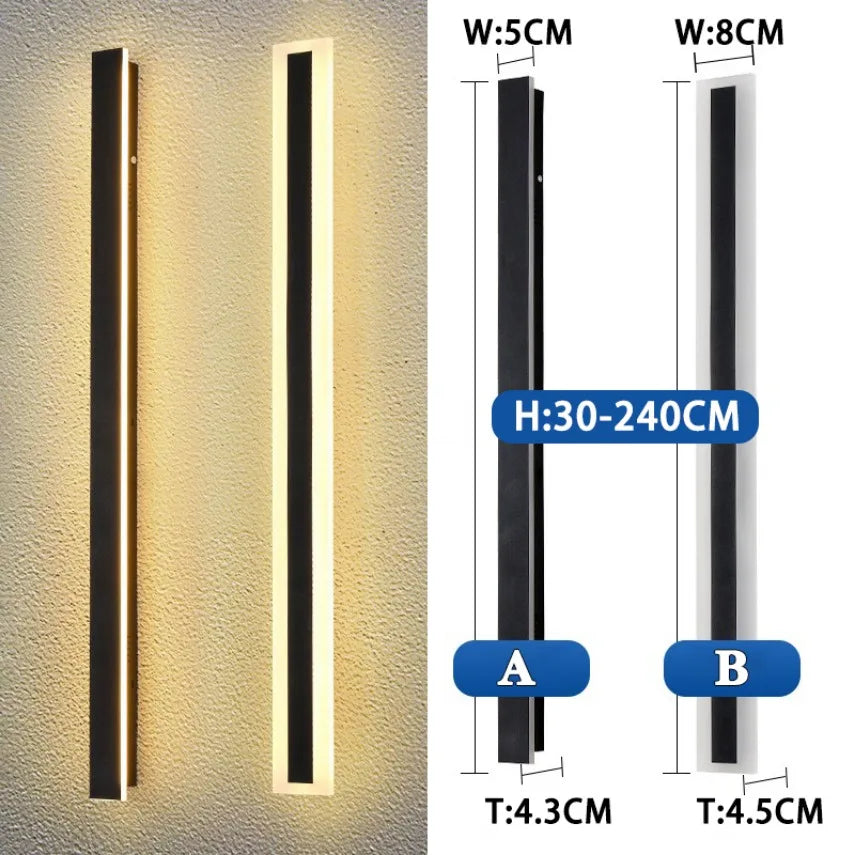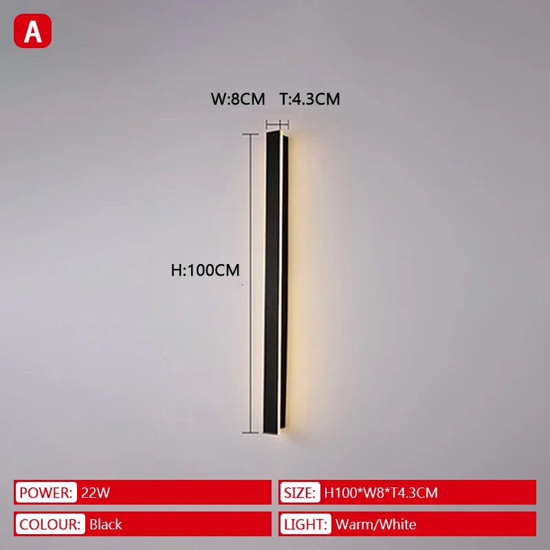 Modern LED Strip Outdoor Wall Lamp – IP65 Waterproof Aluminum Exterior Light (AC 85–265V)